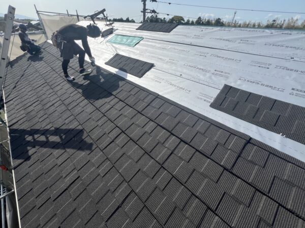 防水シートの上から新しい屋根材を施工します。