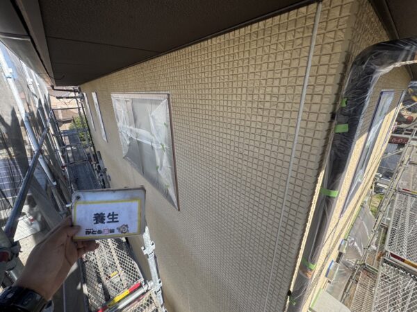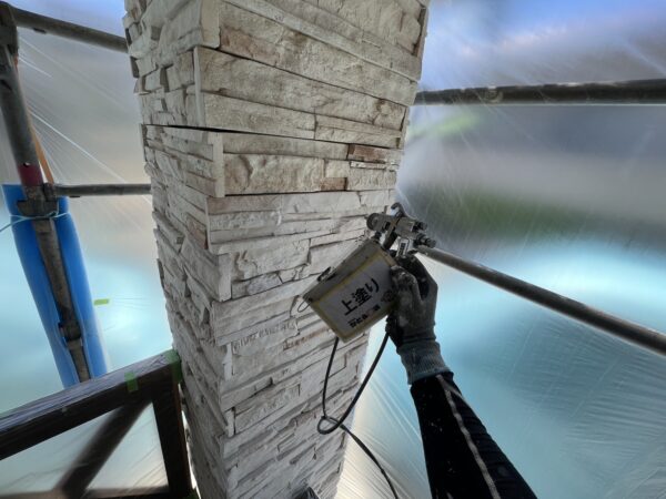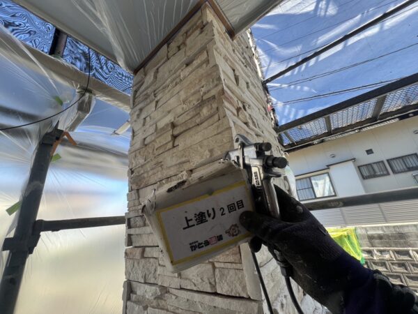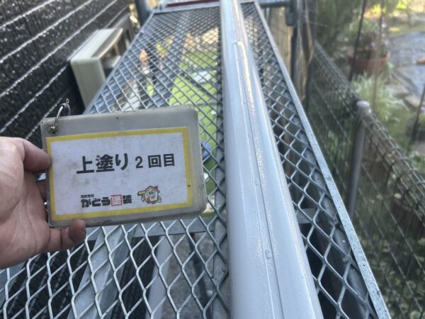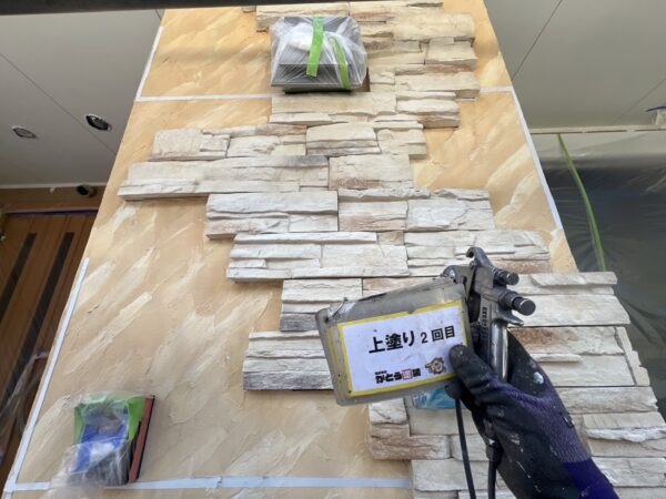 クリヤー(3分艶)の上塗り2回目の施工状況です。