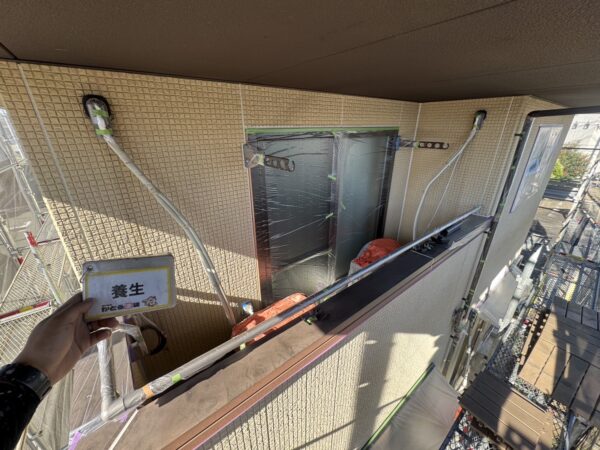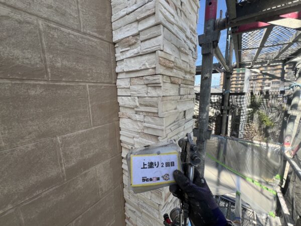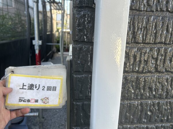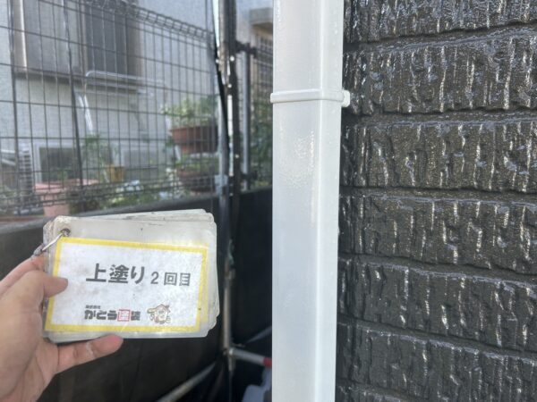 縦樋の上塗り2回目も施工完了しました。
