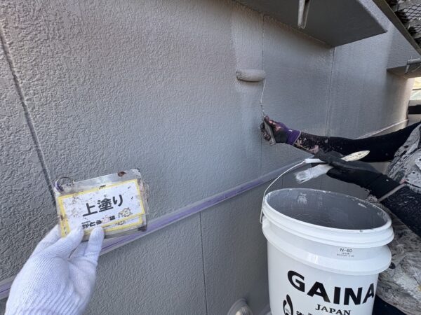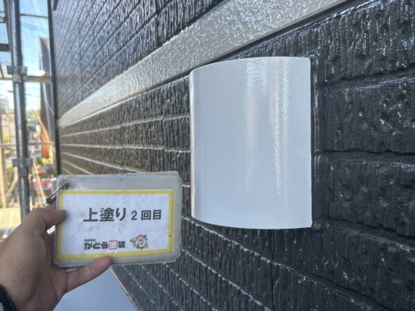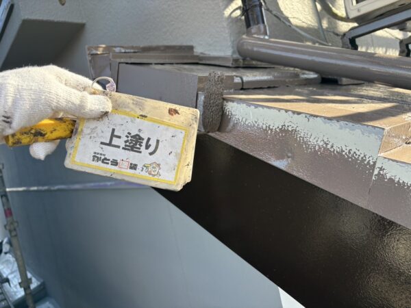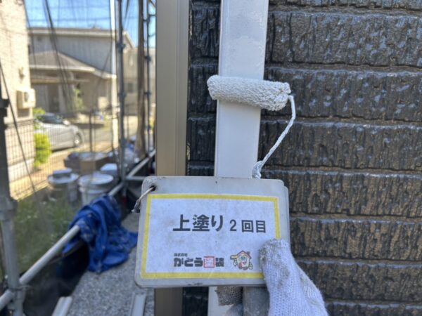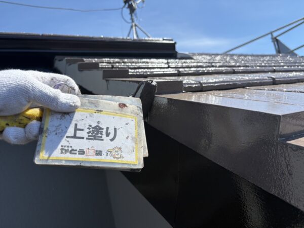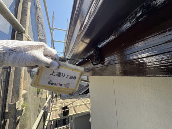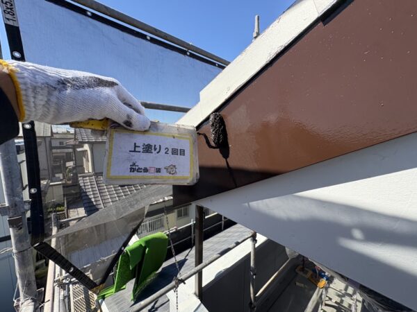 破風板の上塗り2回目の施工状況です。