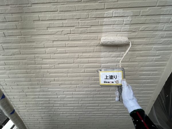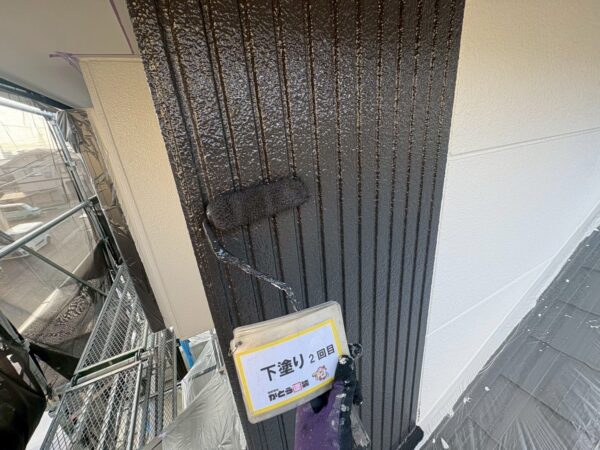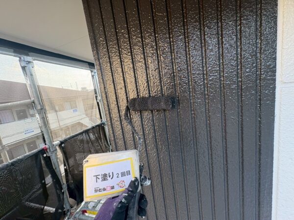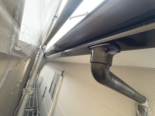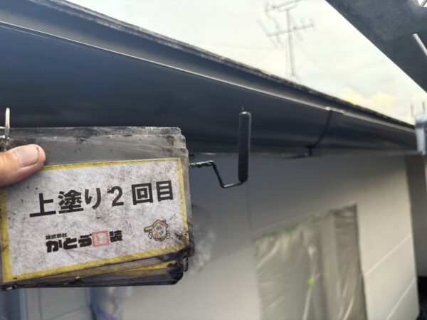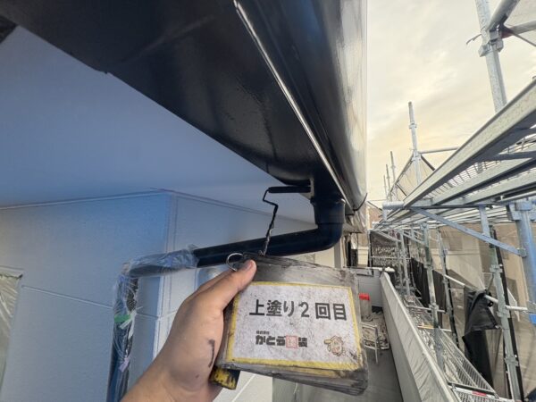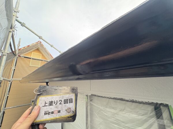 シャッターボックス、雨樋の上塗り2回目の様子です。