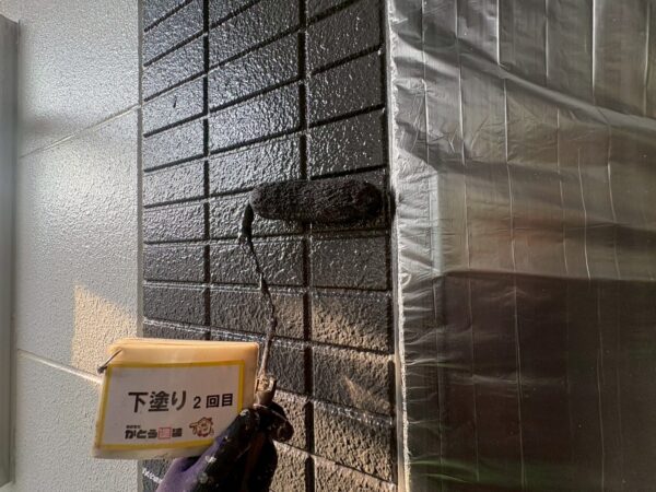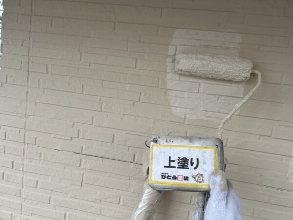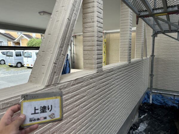 外壁に違う色の塗料が付着していたので、タッチアップをおこないました。