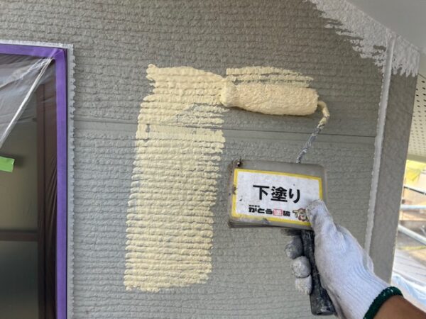 上塗り塗料が綺麗にのるように、下塗りは丁寧にムラなく施工していきます。