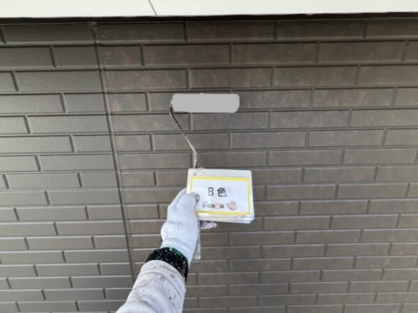 熊本市北区N様邸塗装工事 WB多彩仕上げ工法のベースA色の上から特許ローラーを使い、B色模様付けをおこないました