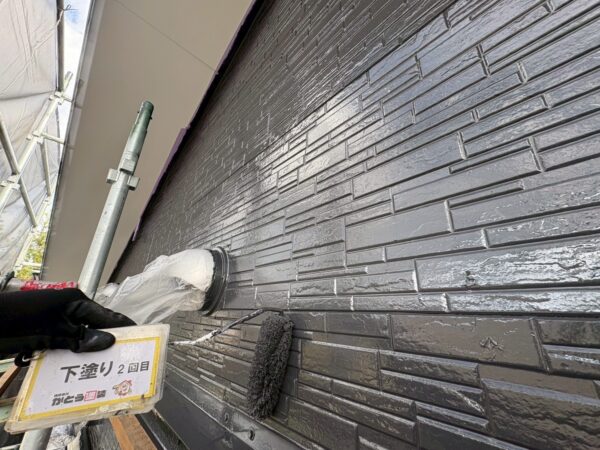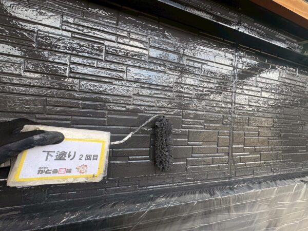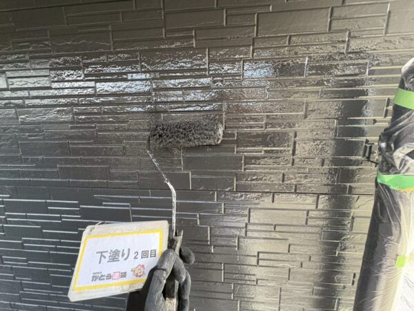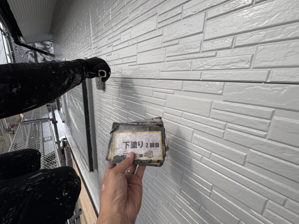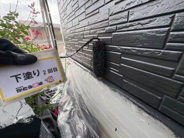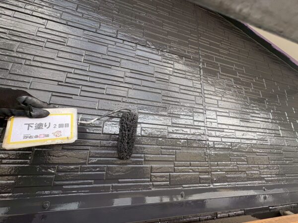 外壁の下塗り2回目の様子です。