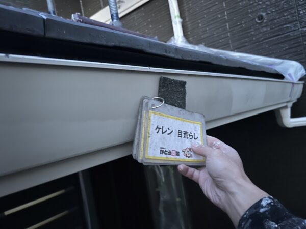 雨樋のケレン、上塗りの様子です。