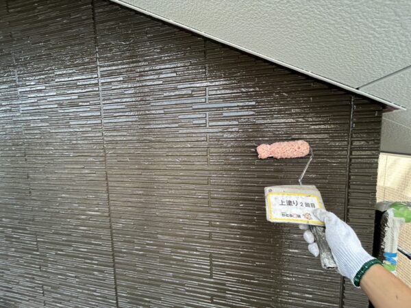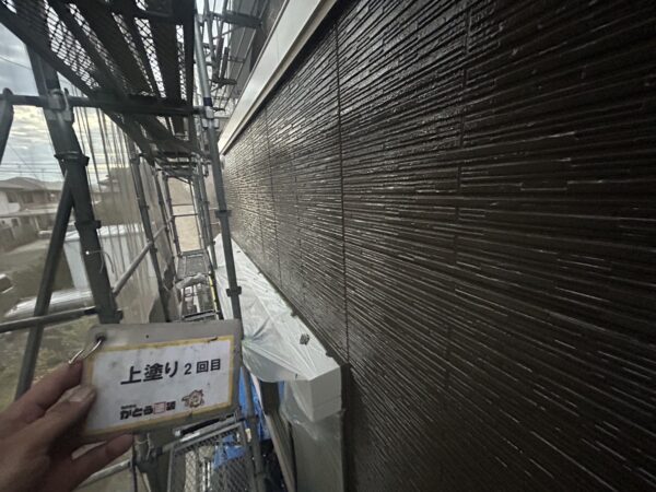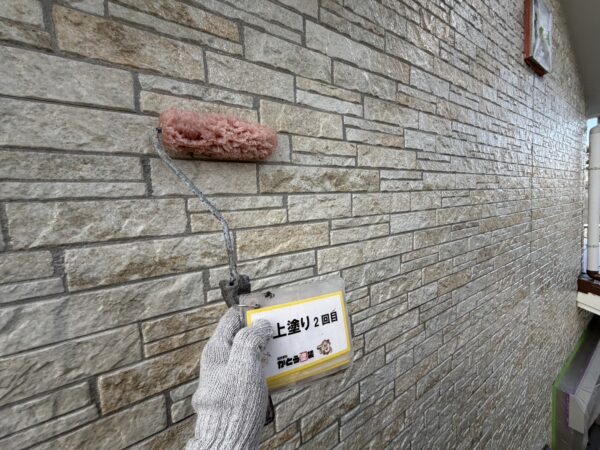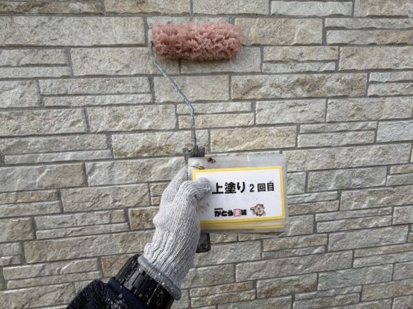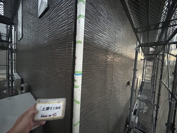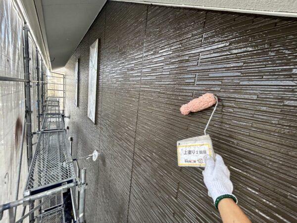 外壁の上塗り2回目の様子です。