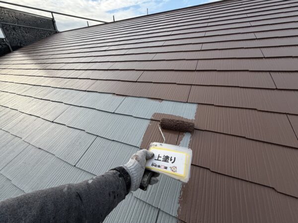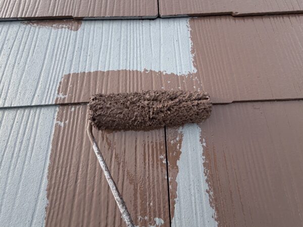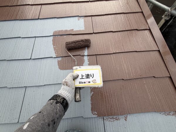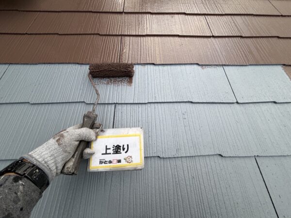 屋根の上塗りの様子です。