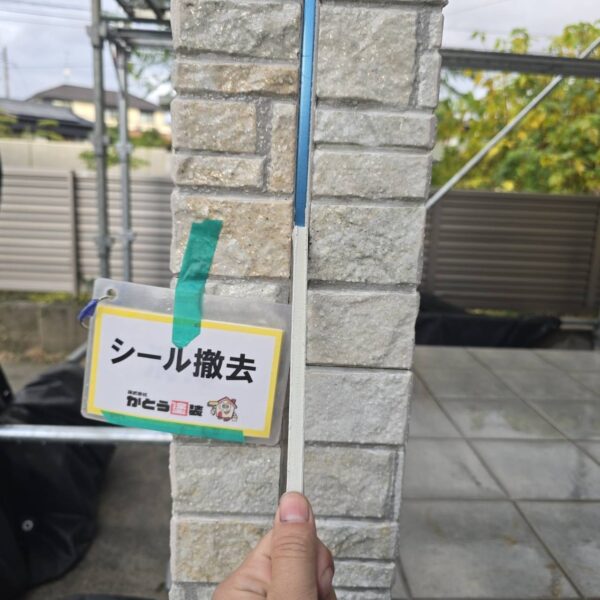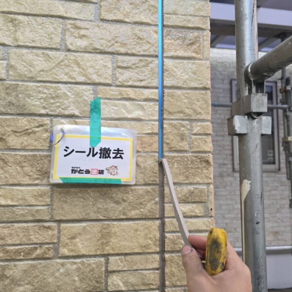 すべて打ち替えをおこないますので、既存のシーリングを撤去します。