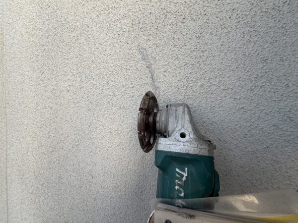 専用の工具でひび割れに沿ってVカットを入れていきます。