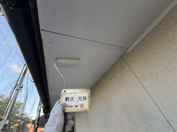 軒天に外壁の塗料が付着していたので、手直しをおこないました。