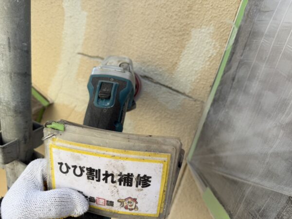 外壁のひび割れが多数ありましたので、補修をおこないます。