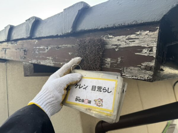 まずはケレンをおこない、古い塗膜や汚れ、サビなどを除去します。