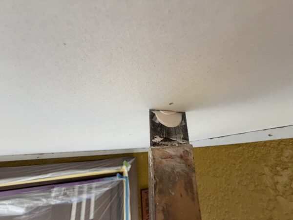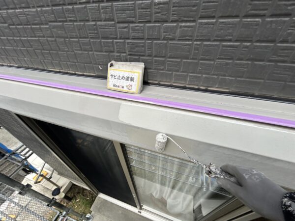 シャッターボックスのケレン、サビ止め塗装の様子です。