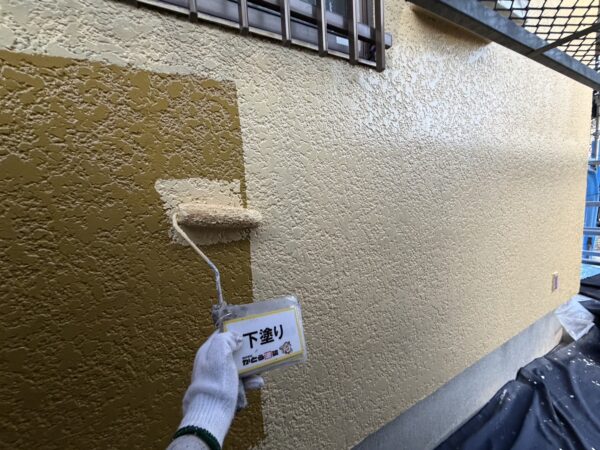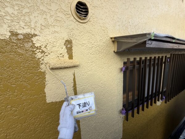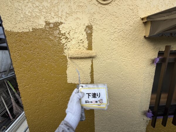 外壁の下塗りの様子です。