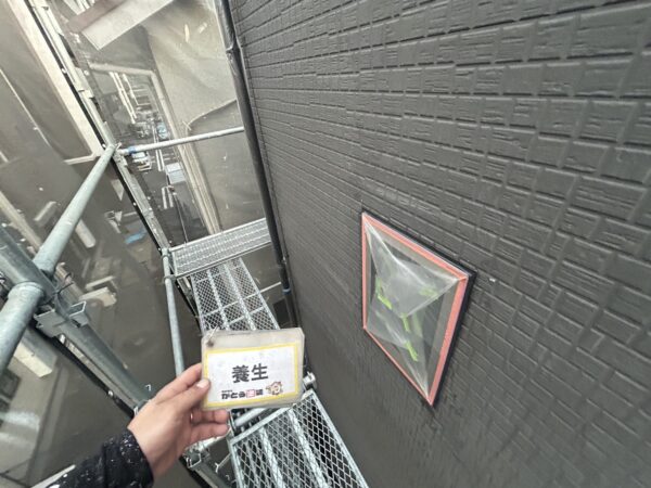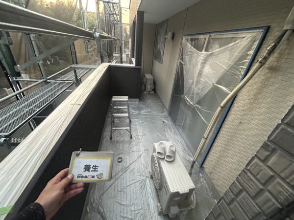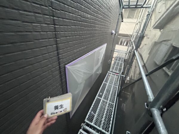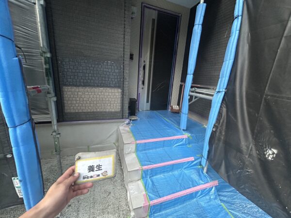 高圧洗浄後、養生をおこないます。