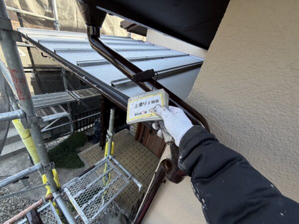 雨樋、鼻隠しの上塗り2回目の様子です。