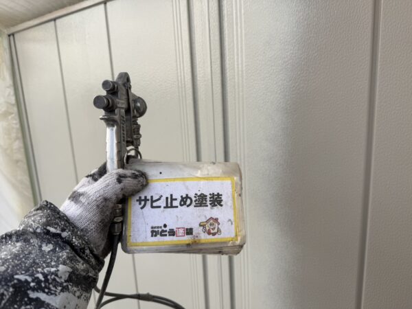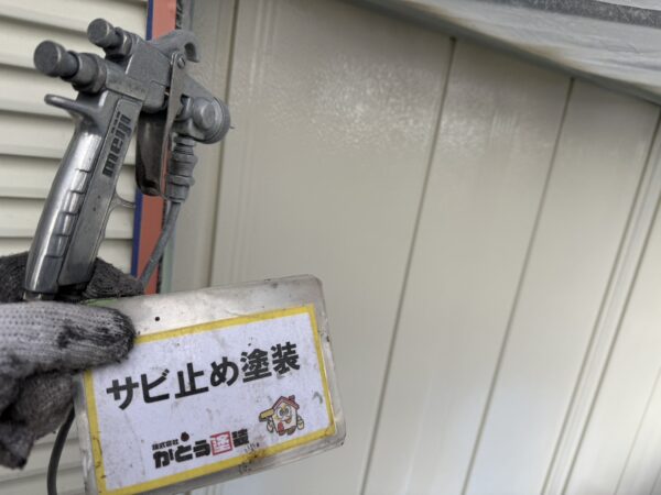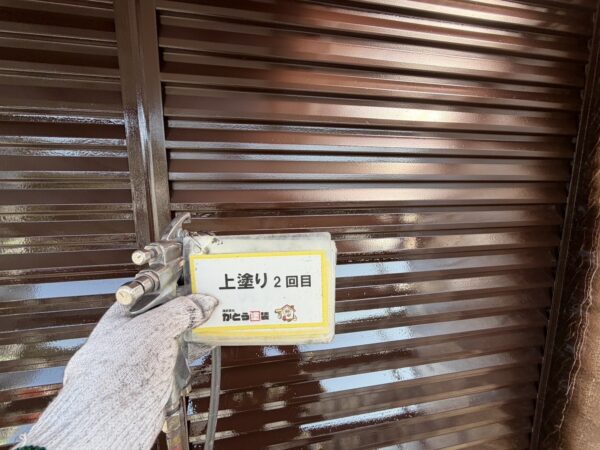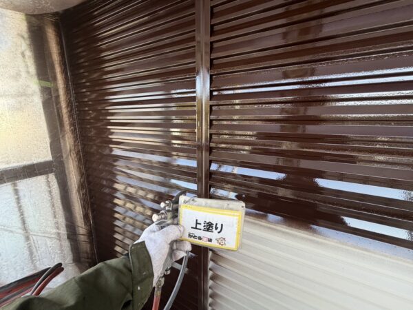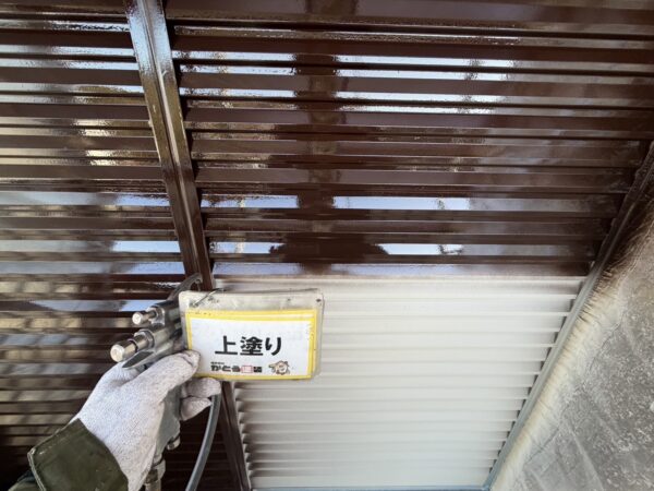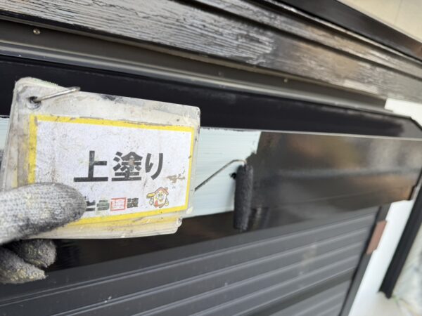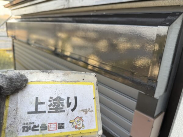 シャッターボックスの上塗りの様子です。