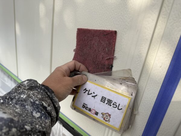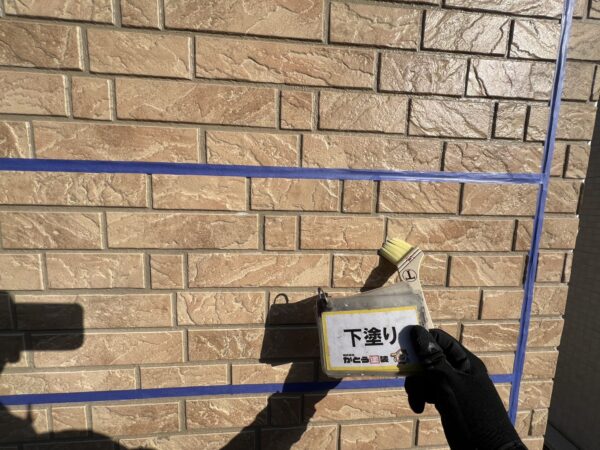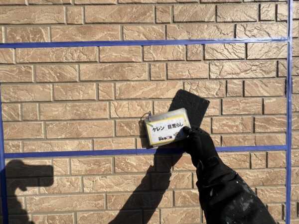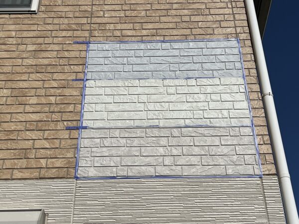実際に塗装する壁に事前に試し塗りをし、カラーの選定をおこないます。