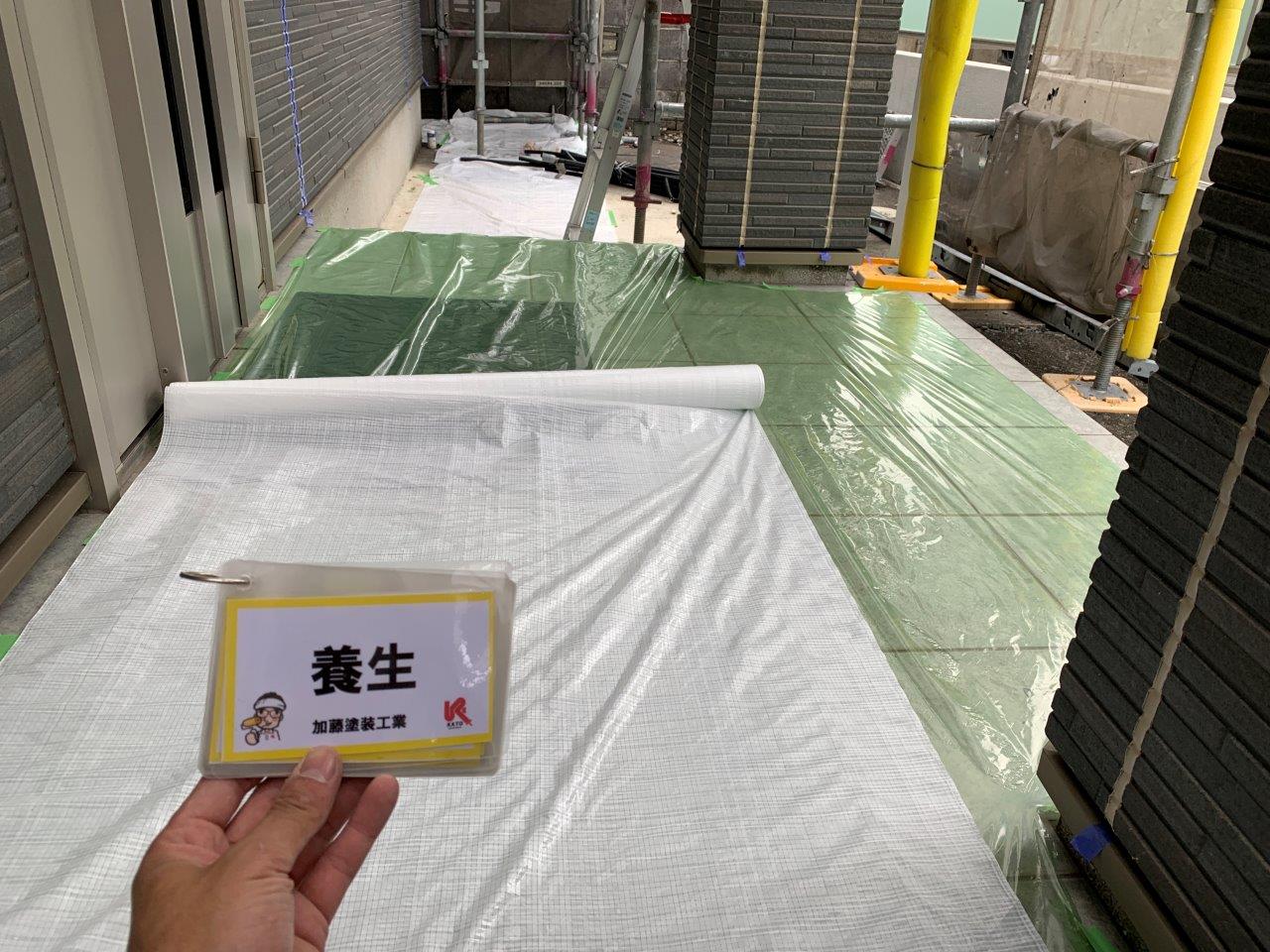 化粧もんの張り石を養生します。