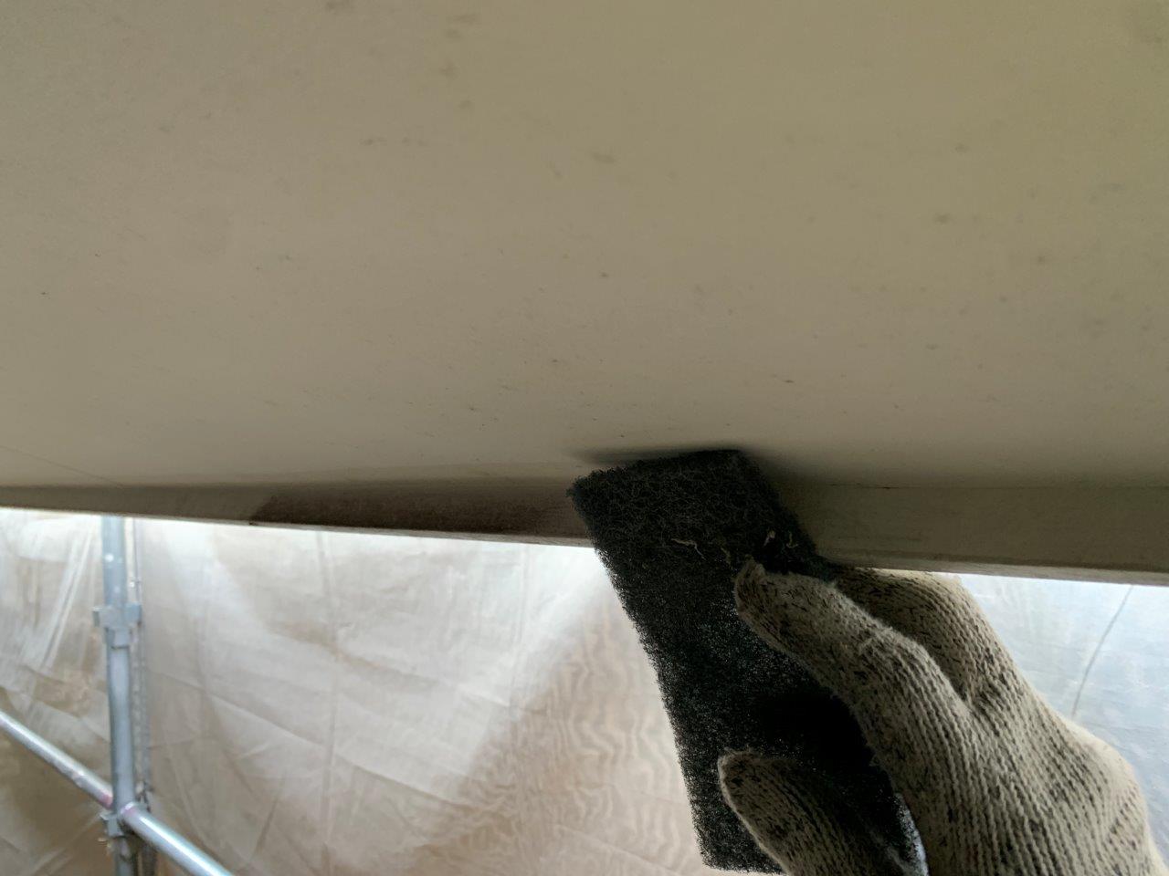 軒天のかえりの箇所が洗い残しがありました。ケレンしてから塗装しました。