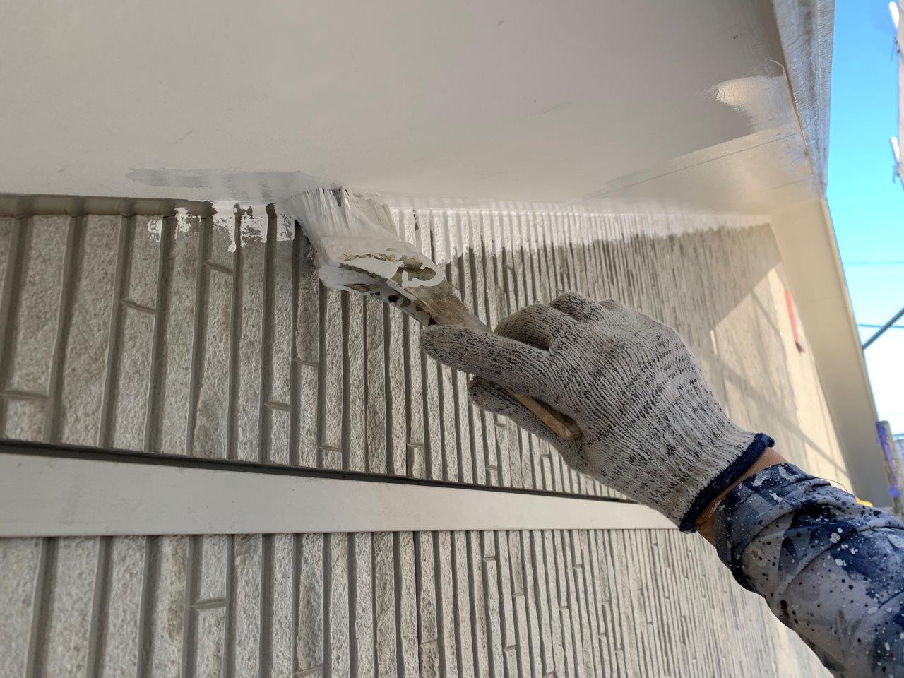 N様邸、難付着サイディングボード 下塗り 軒天塗装