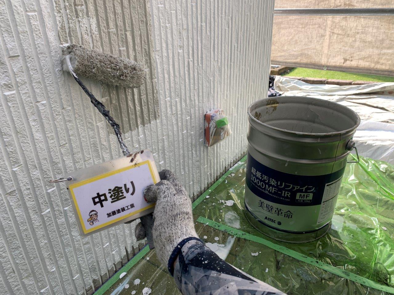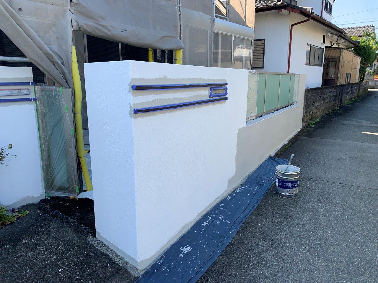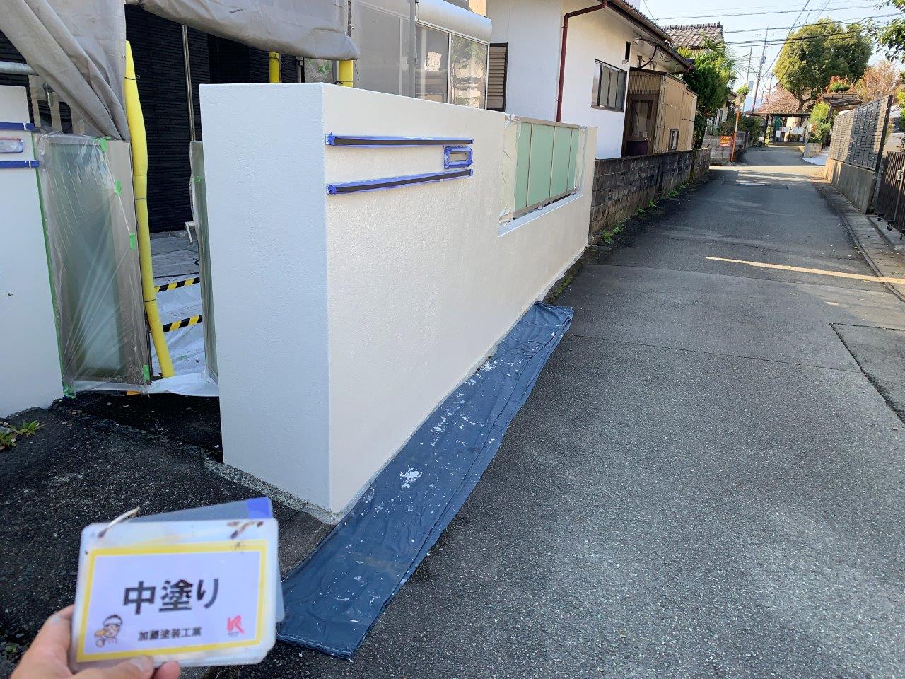 N様邸 外壁塗装 塀塗装 中塗り 屋根ひび割れ補修