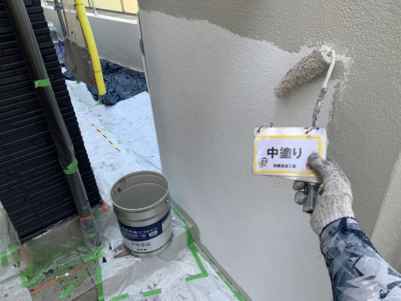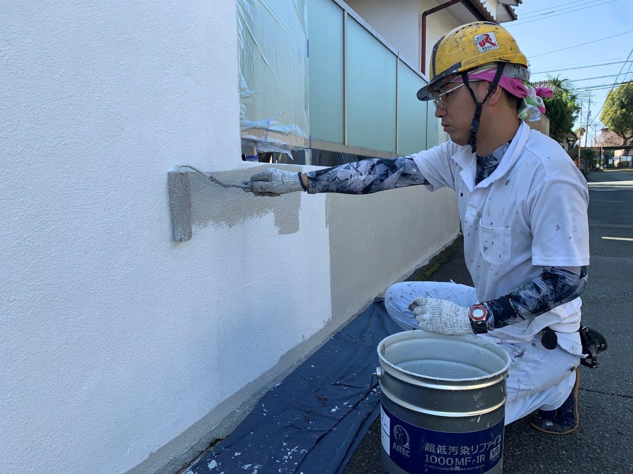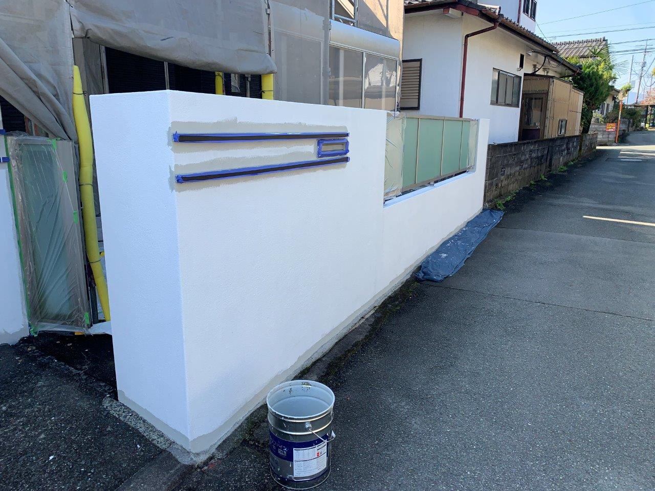 N様邸 外壁塗装 塀塗装 中塗り 屋根ひび割れ補修