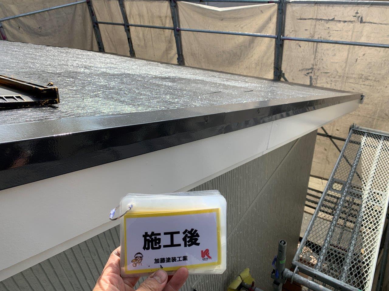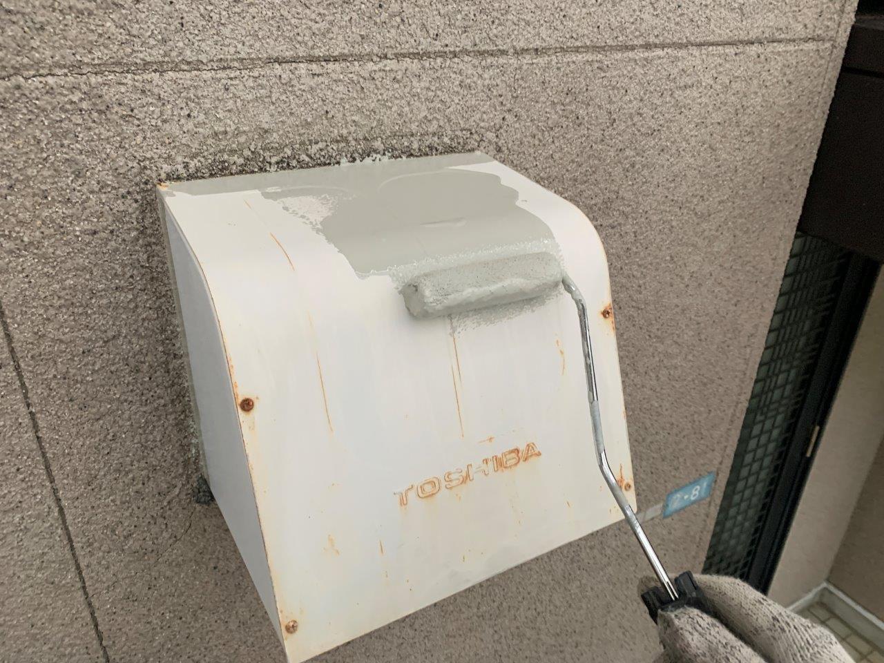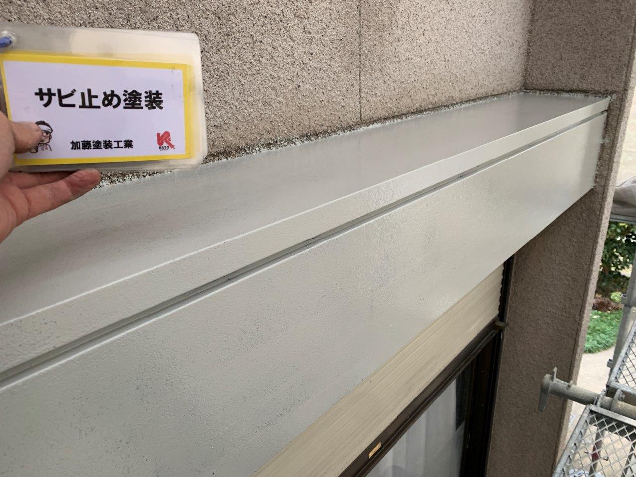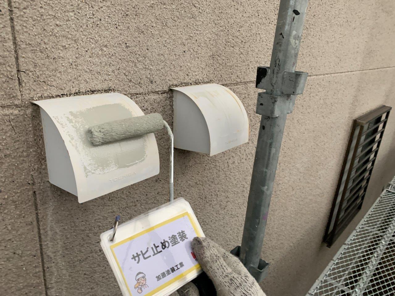 サビ止め塗装状況です。 屋根は鉄部が存在していますので屋根の下塗りは浸透性系のシーラーなので鉄部は塗装が厳しいので先に塗装しときます。