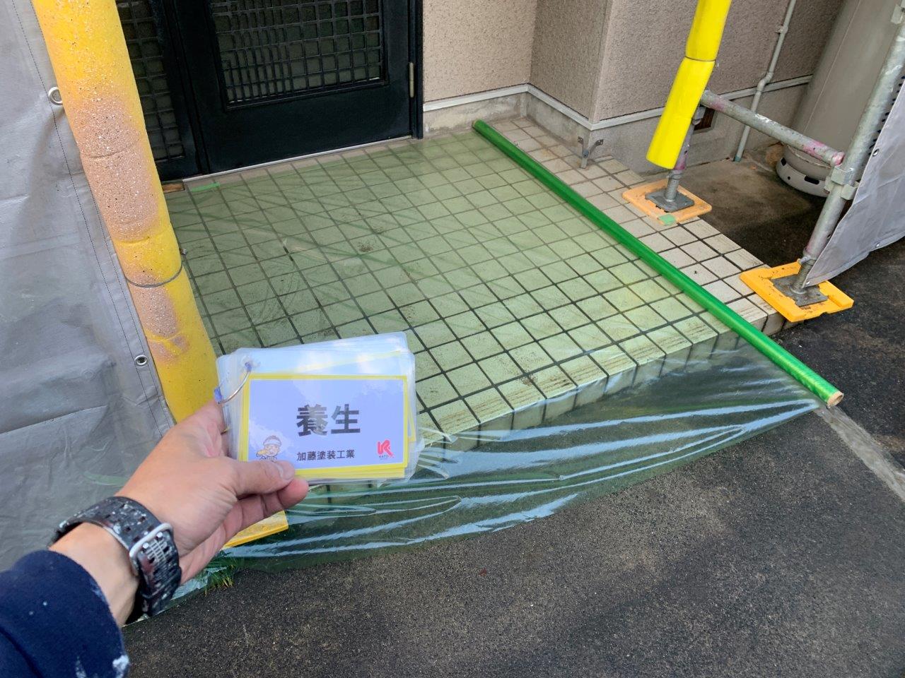 そのあとにシート養生をします。二重にすることで確実にタイルを汚しません。