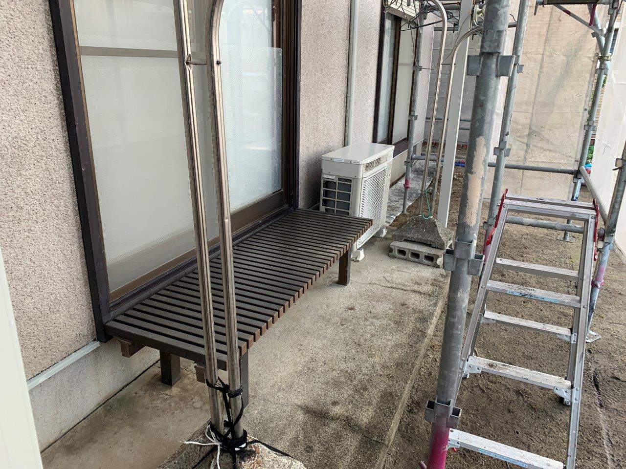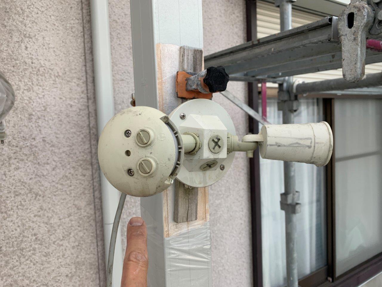 バルコニーの支柱にライトが取り付けてありましたけど、不必要ということでとりはずしてその後、塗装します。