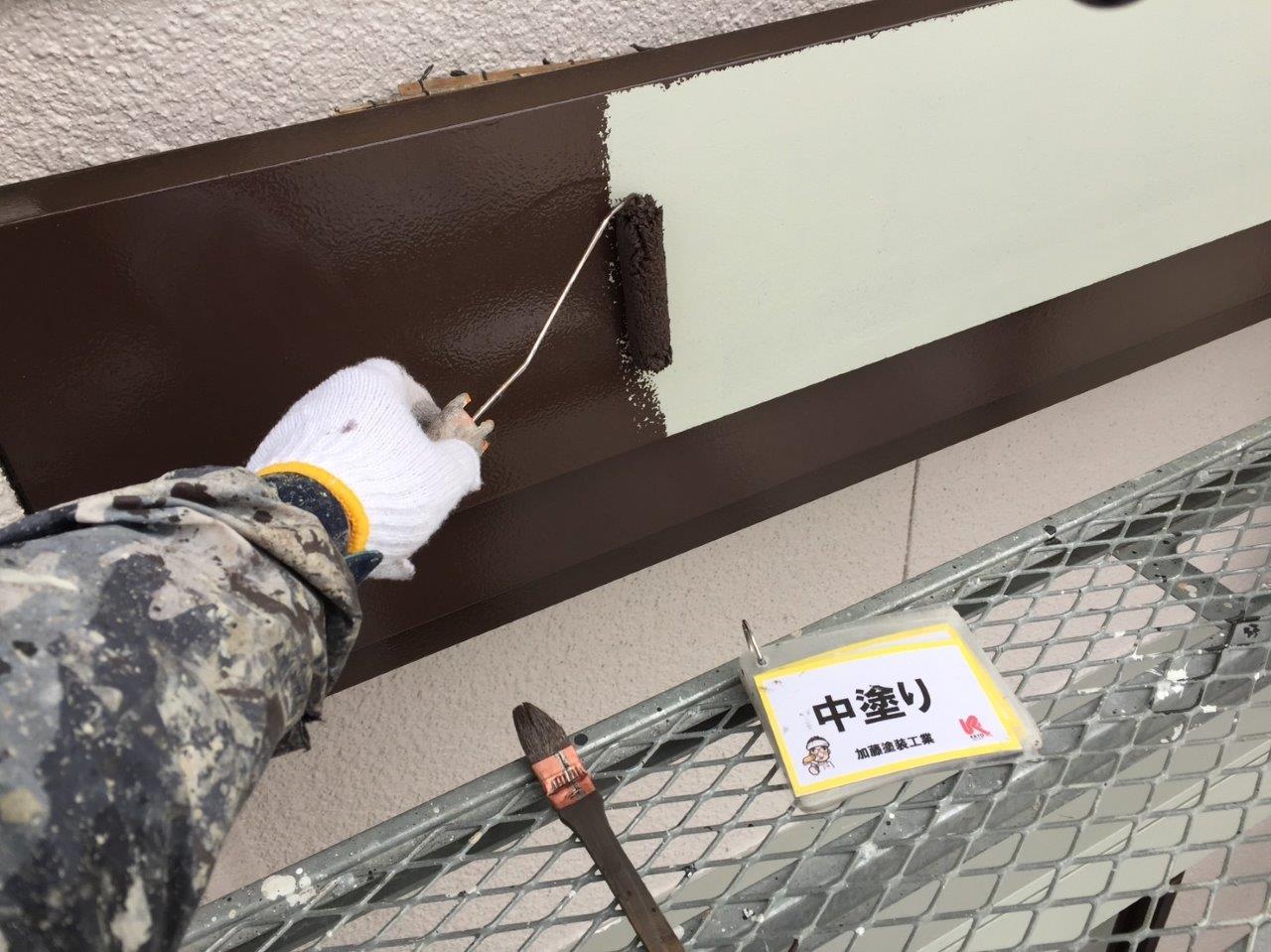 シャッターボックス塗装の中塗り状況です。
