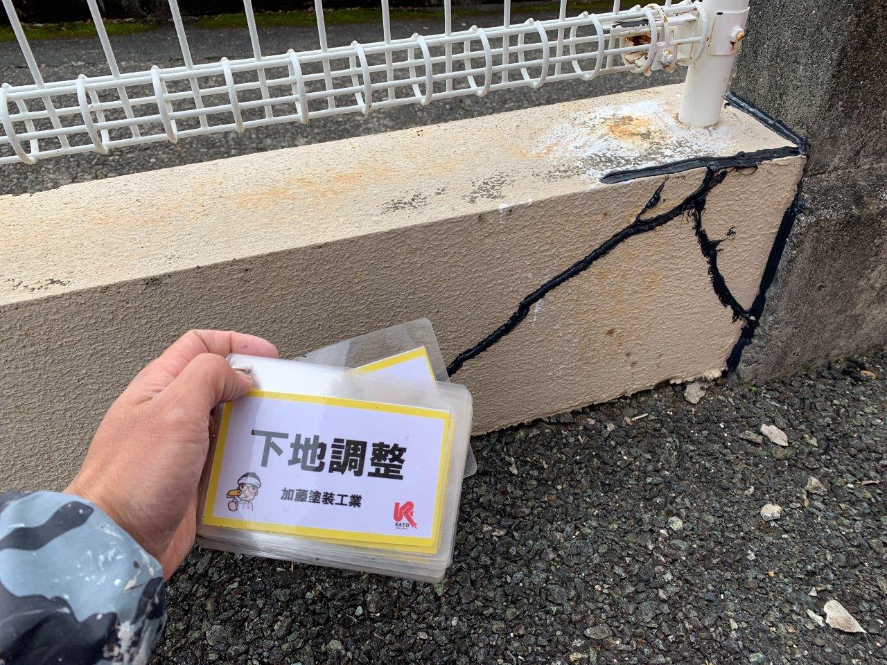 塀塗装 補修状況です。 専用の接着材でくっつけます。
