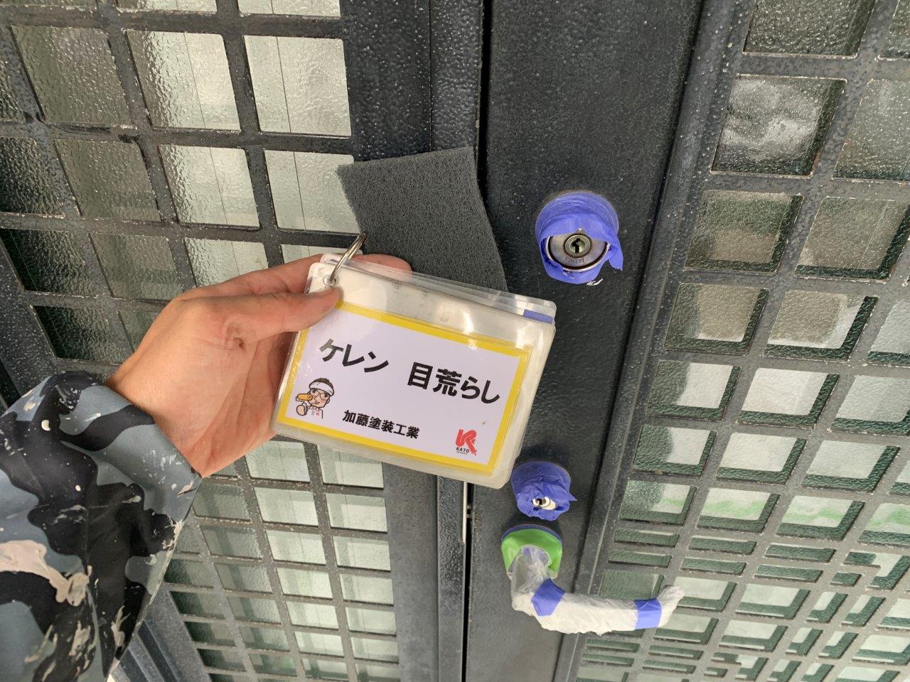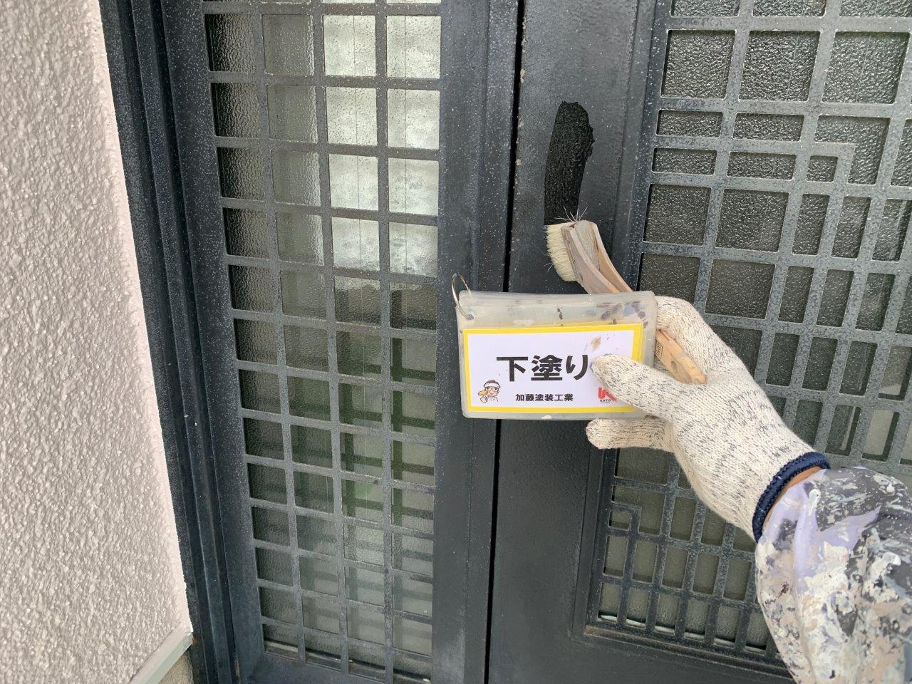 玄関扉も塗装します。