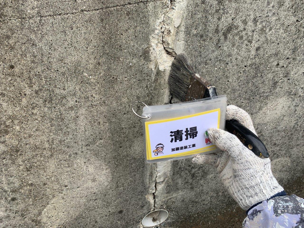 下地調整をします。以前にモルタル補修した形跡がありました。