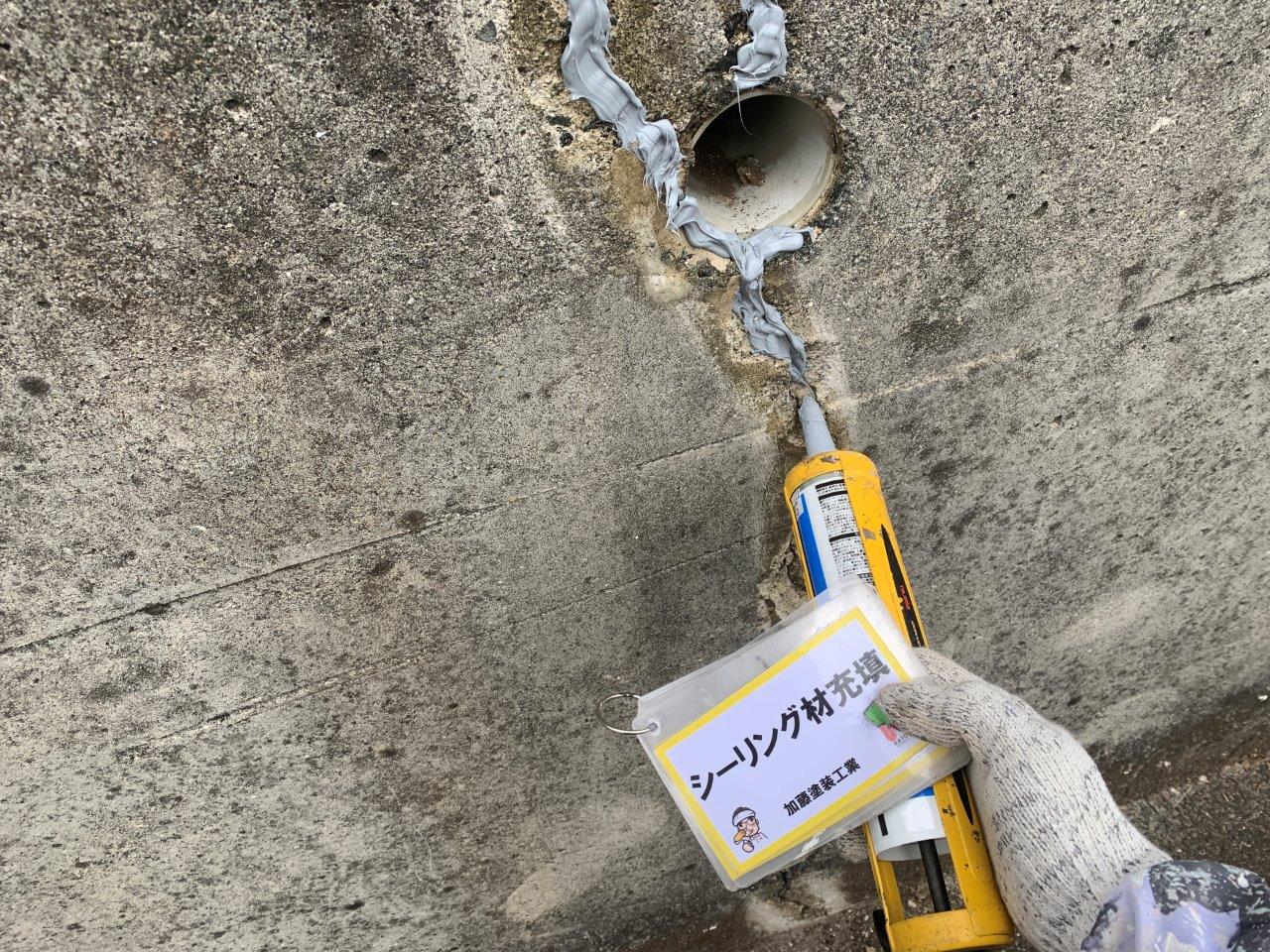 乾燥後に専用のシーリング材を充填していきます。