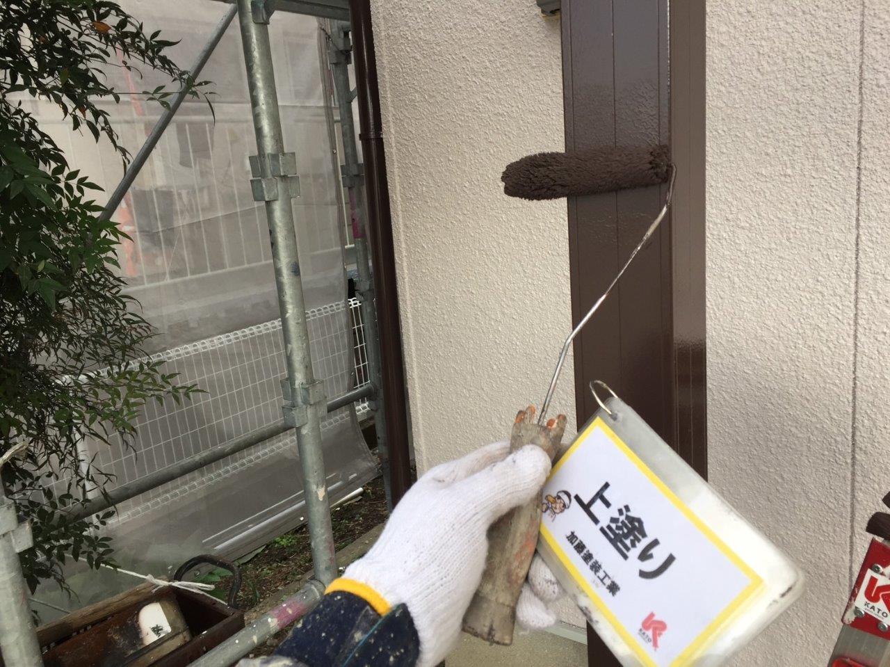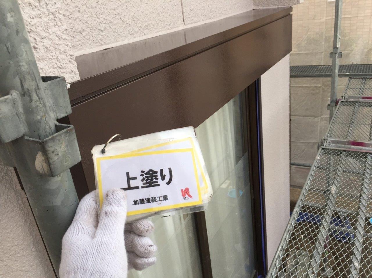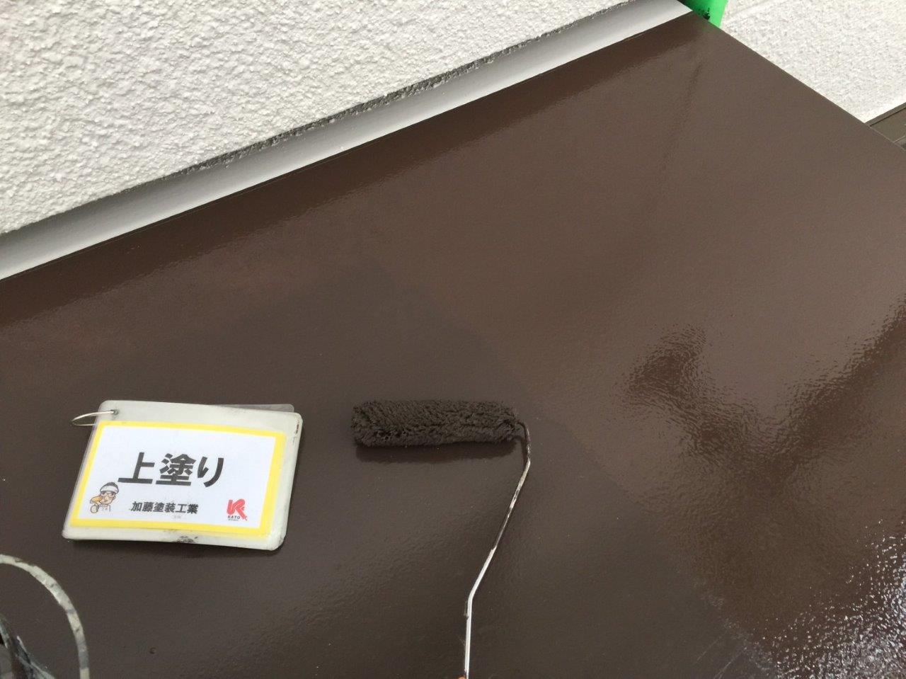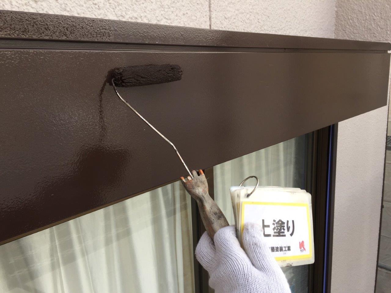 シャッターボックス塗装 上塗り状況です。