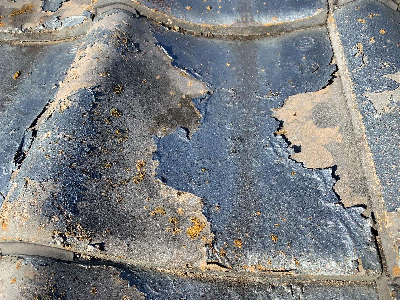 わたし加藤はこういった屋根瓦を数多く塗装してきました。10年たったらこうなる15年たったらこうなるという風に理解しております。屋根瓦塗装は失敗される方が本当に多いです。毎年何件もこういった事例にあたります。