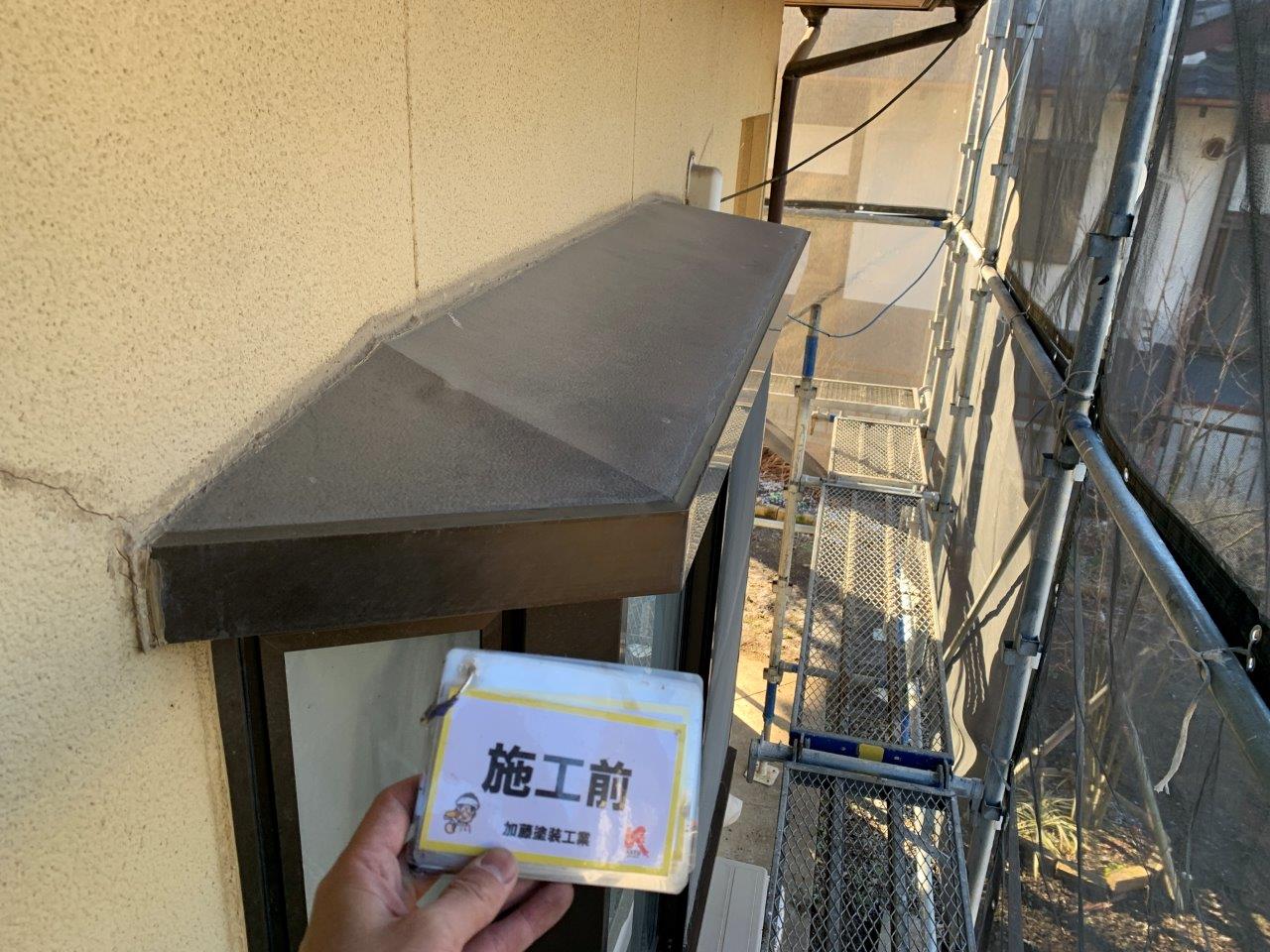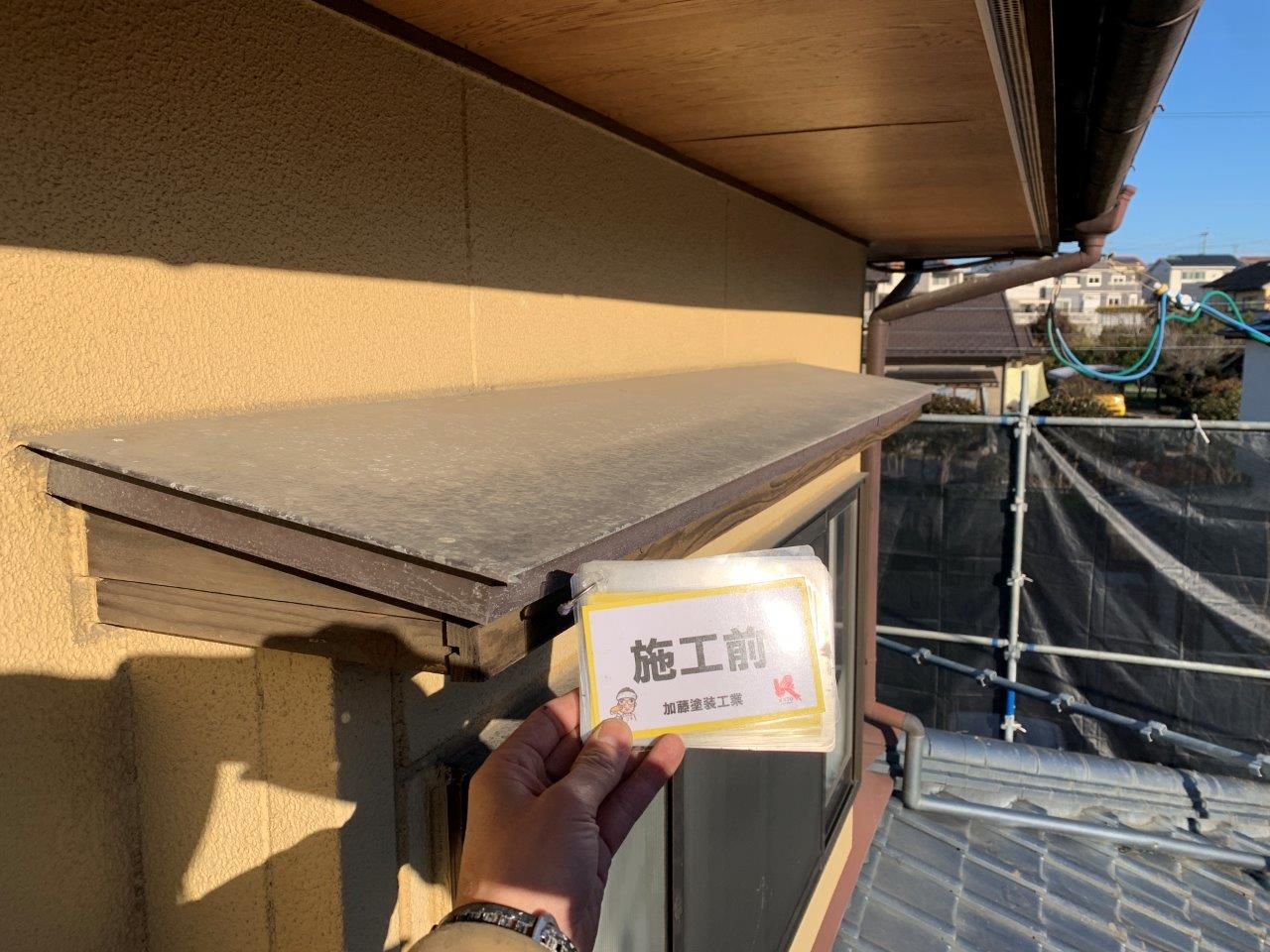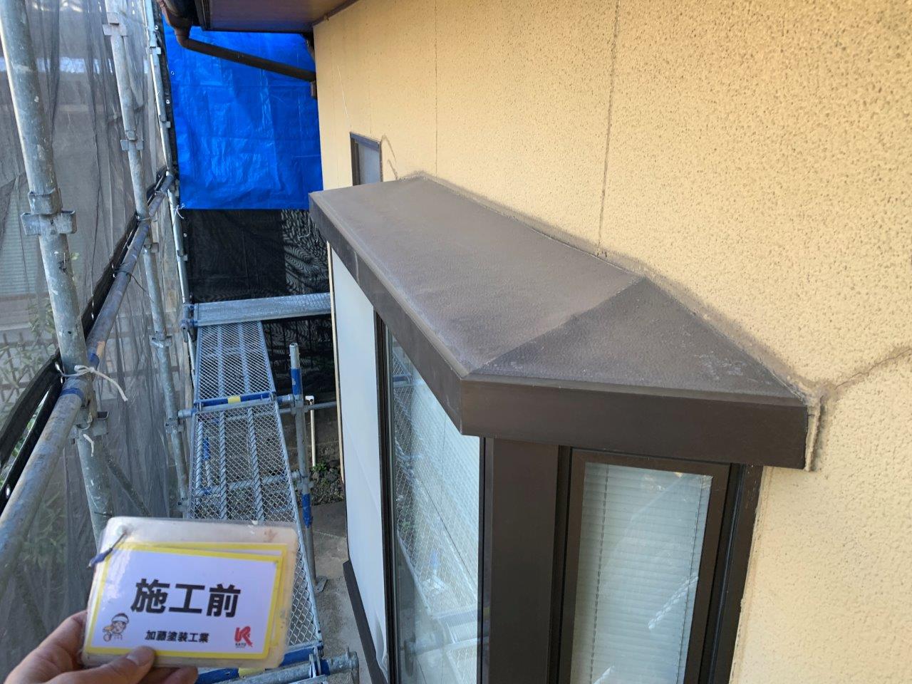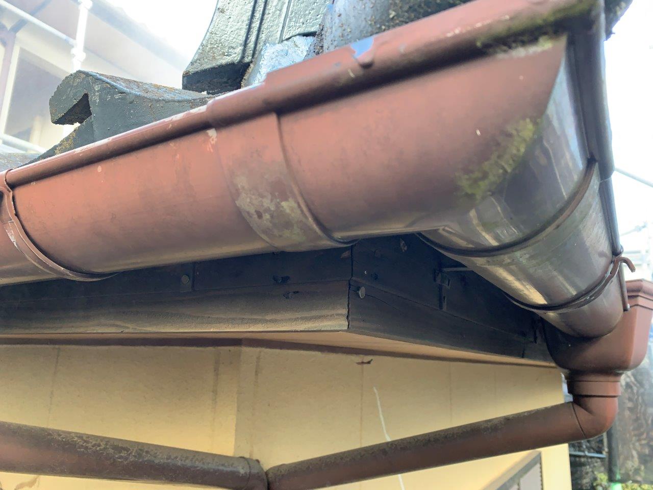 屋根が剝離していたから案の定、付帯部関係も塗膜がめくれてきております。全部剝ぎ取ることは出来ないのでこの上に塗装する形になります。
