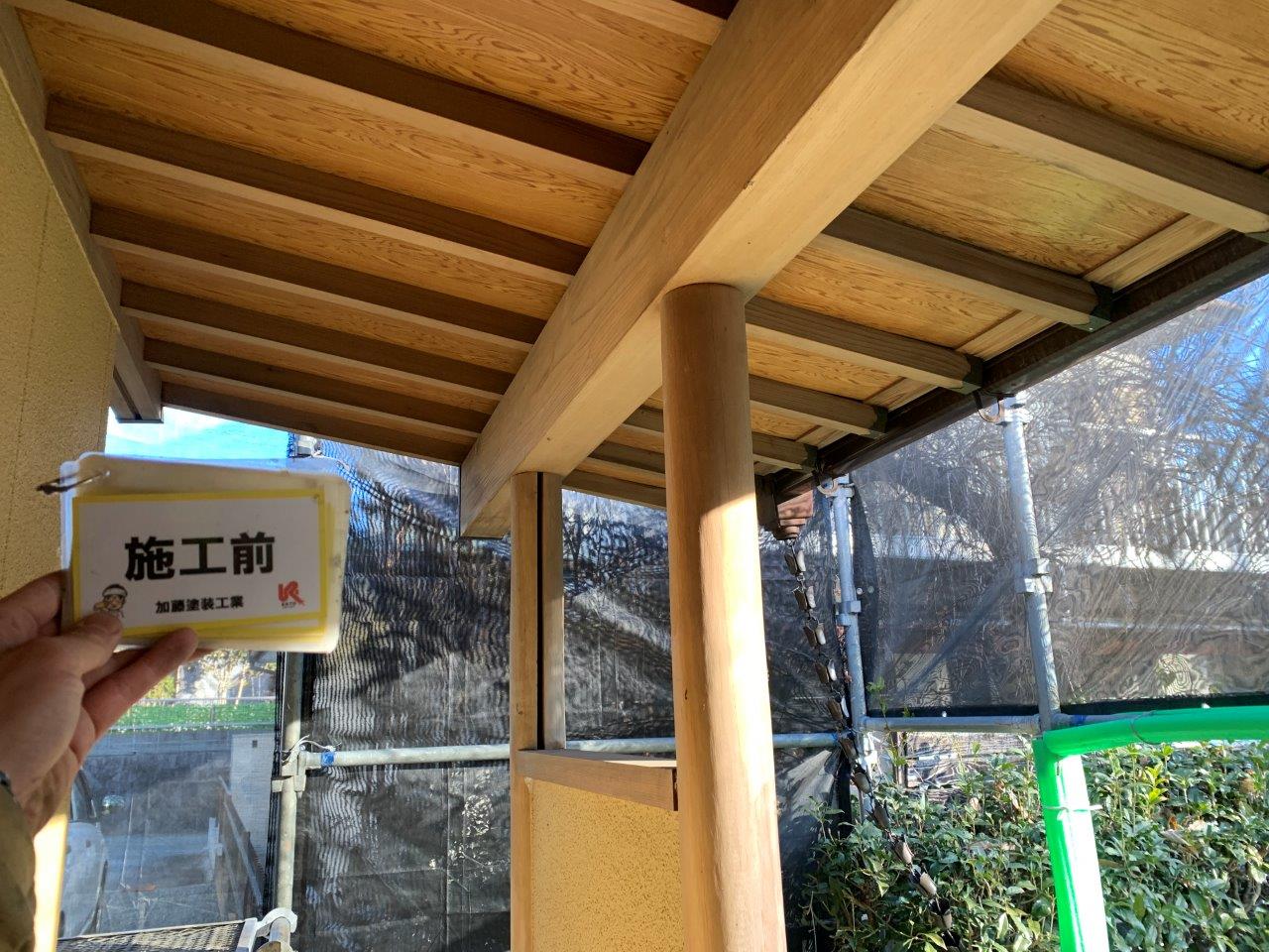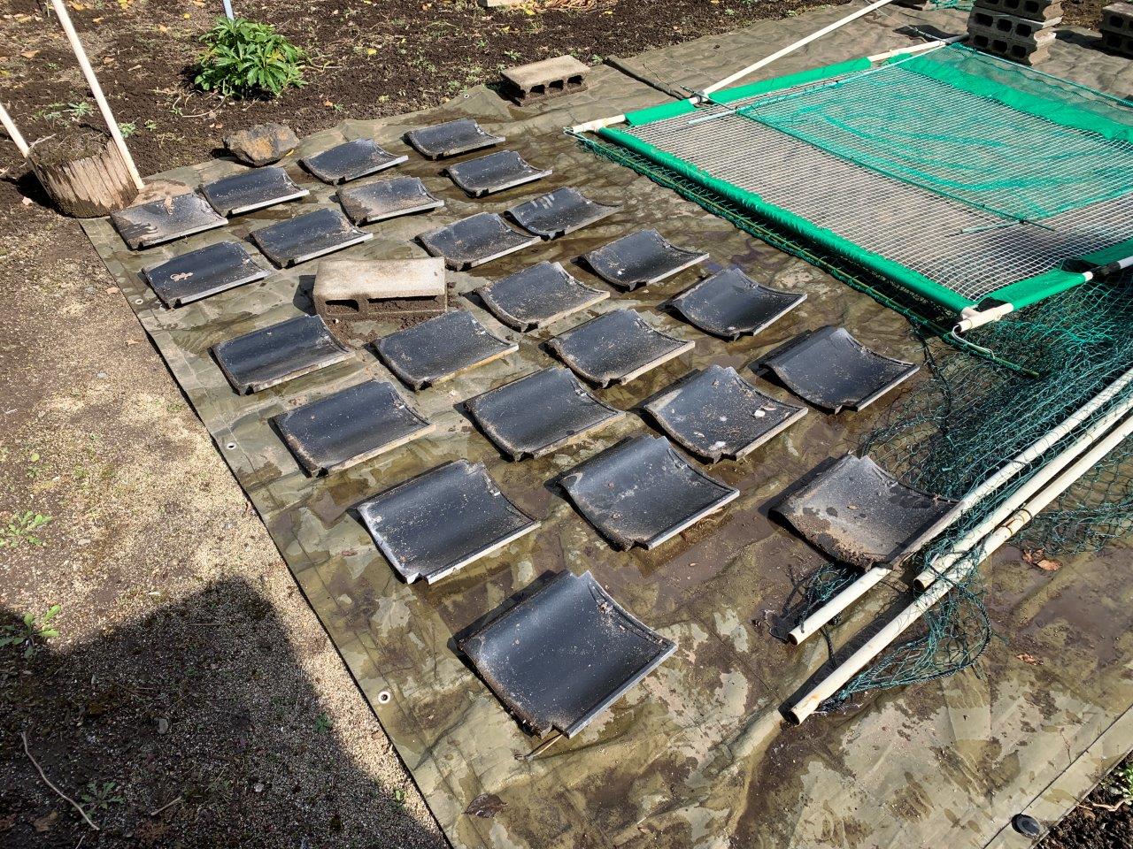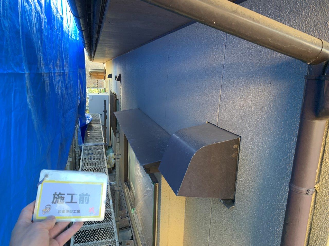 近隣が近いので高圧洗浄まえにブルーシートを貼りました。
