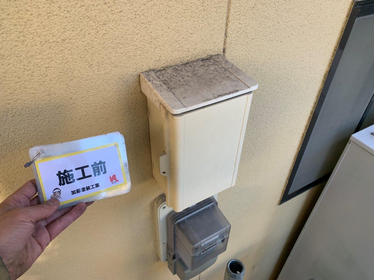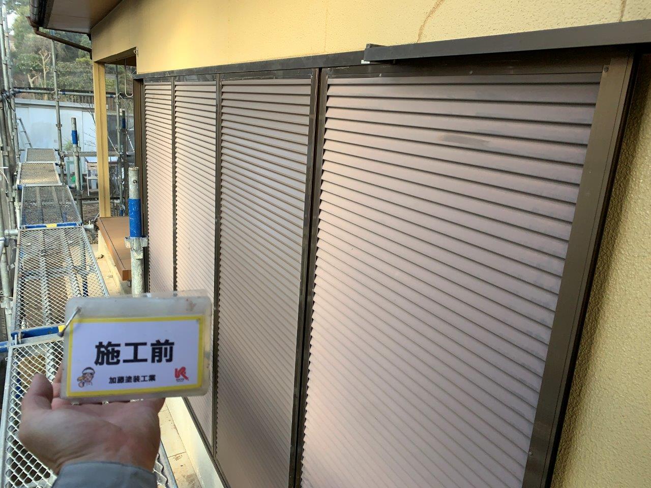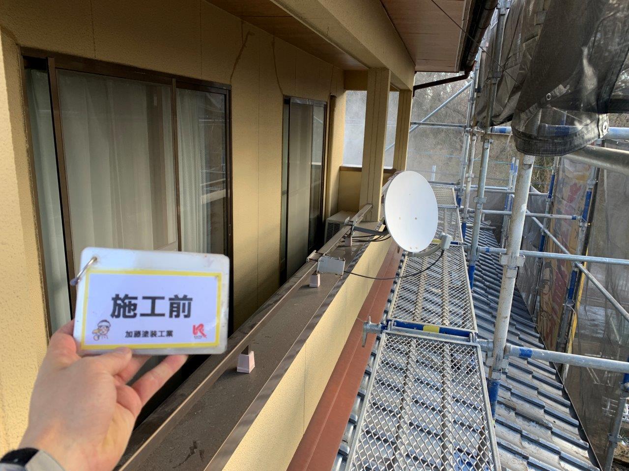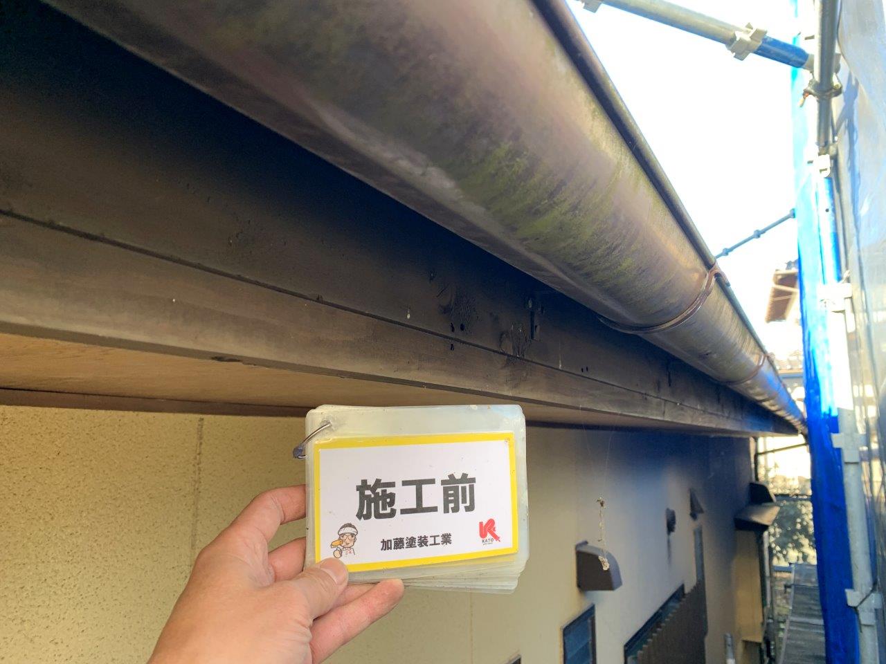 近隣が近いので高圧洗浄まえにブルーシートを貼りました。