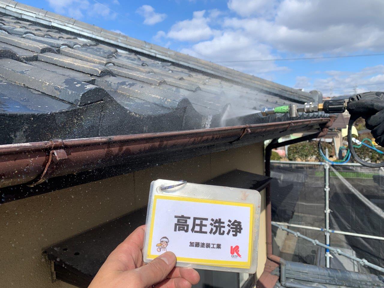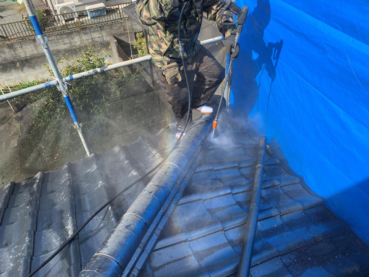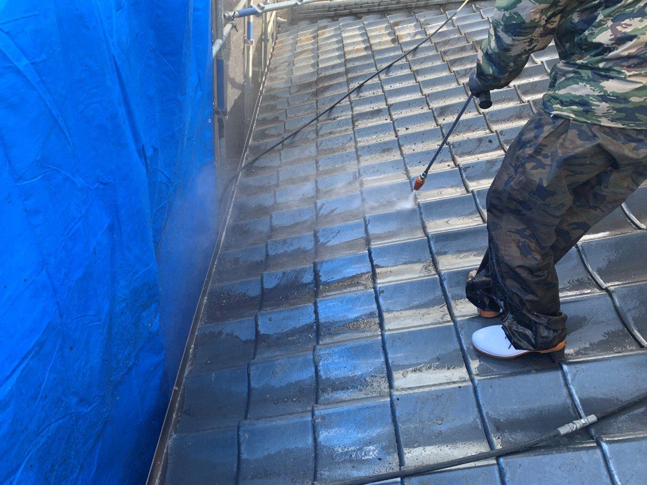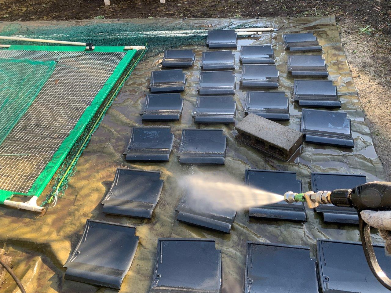 熊本市北区須屋 セメント瓦塗り替え工事 高圧洗浄をおこないました。