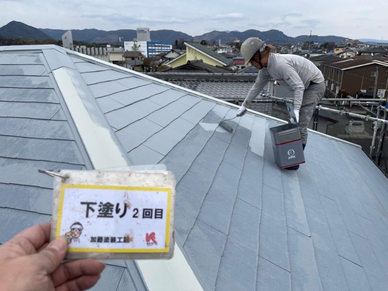 熊本県山鹿市 M様邸屋根塗装 下塗り2回目をおこないました。
