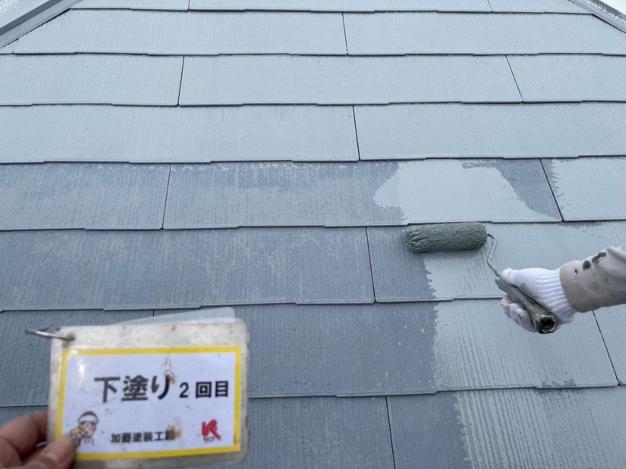 屋根の下塗り2回目です。ムラムラですので吸込みがある状態になります。2回下塗りを塗ることで本当に仕上がりがよくなります。