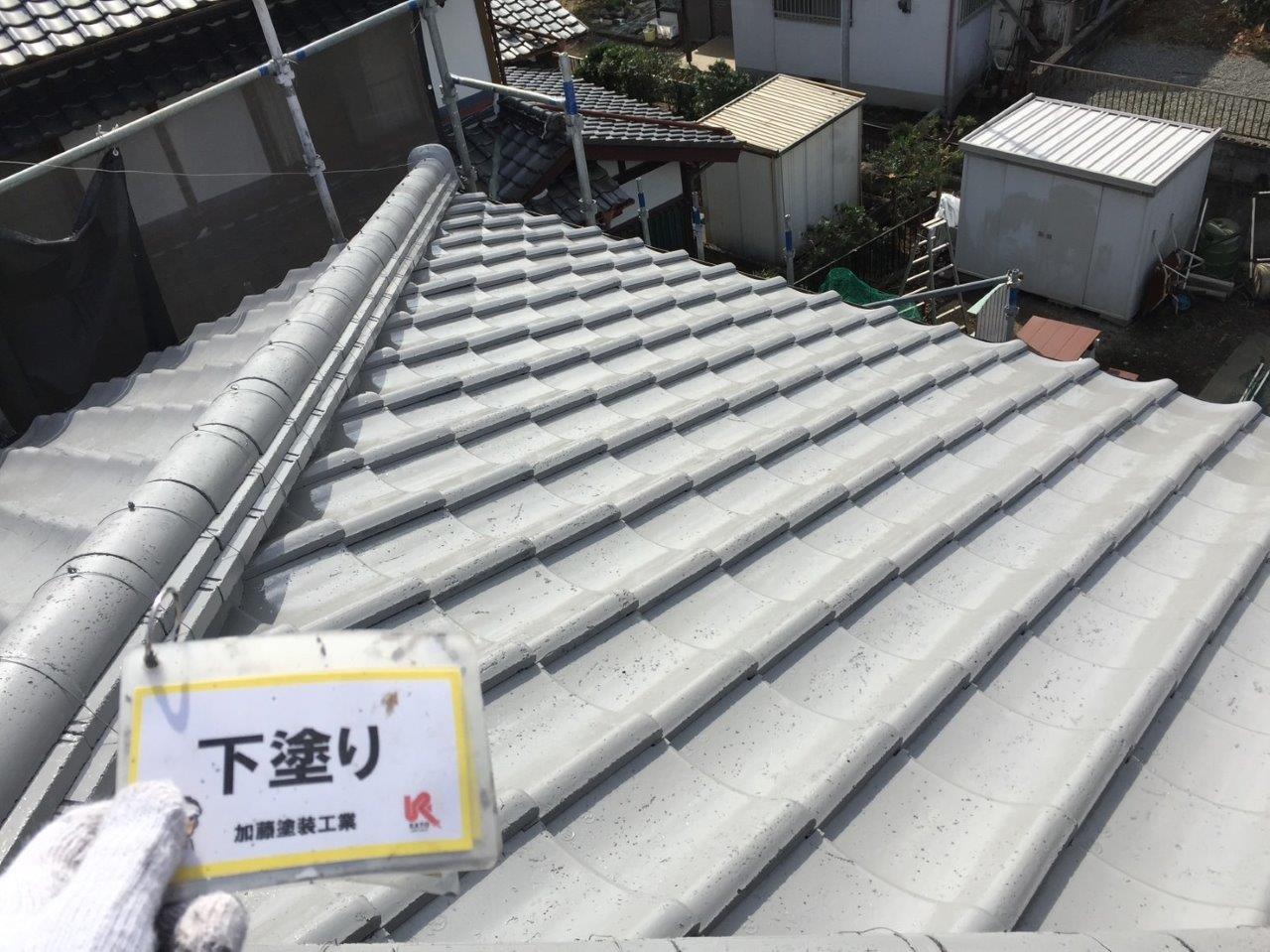 blog 合志市須屋 セメント瓦塗装工事 下塗りをしました。 現場情報 屋根瓦を吹き付けするために壁を養生します。1100ミリのマスカーで養生します。 外壁雨どいは仕上がっているので汚さないように気をつけます。 下地調整 旧塗膜をケレンします。 瓦にひび割れがあります。交換します。 屋根の下塗りになります。 屋根の下塗り状況です。 下塗をする前です。 下塗後になります。 0120-659-976 [受付]8:00~20:00 [定休]元日のみ メールでお問い合わせ 前の記事 次の記事 一覧へ戻る