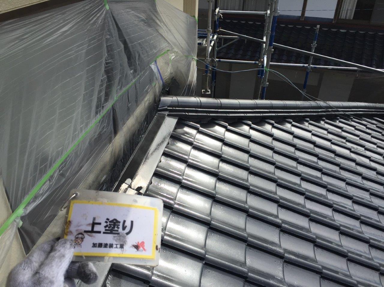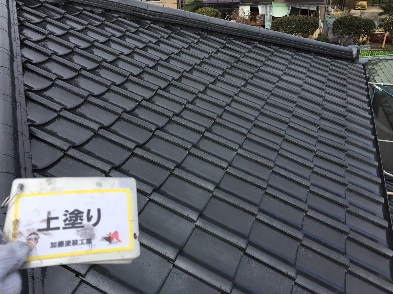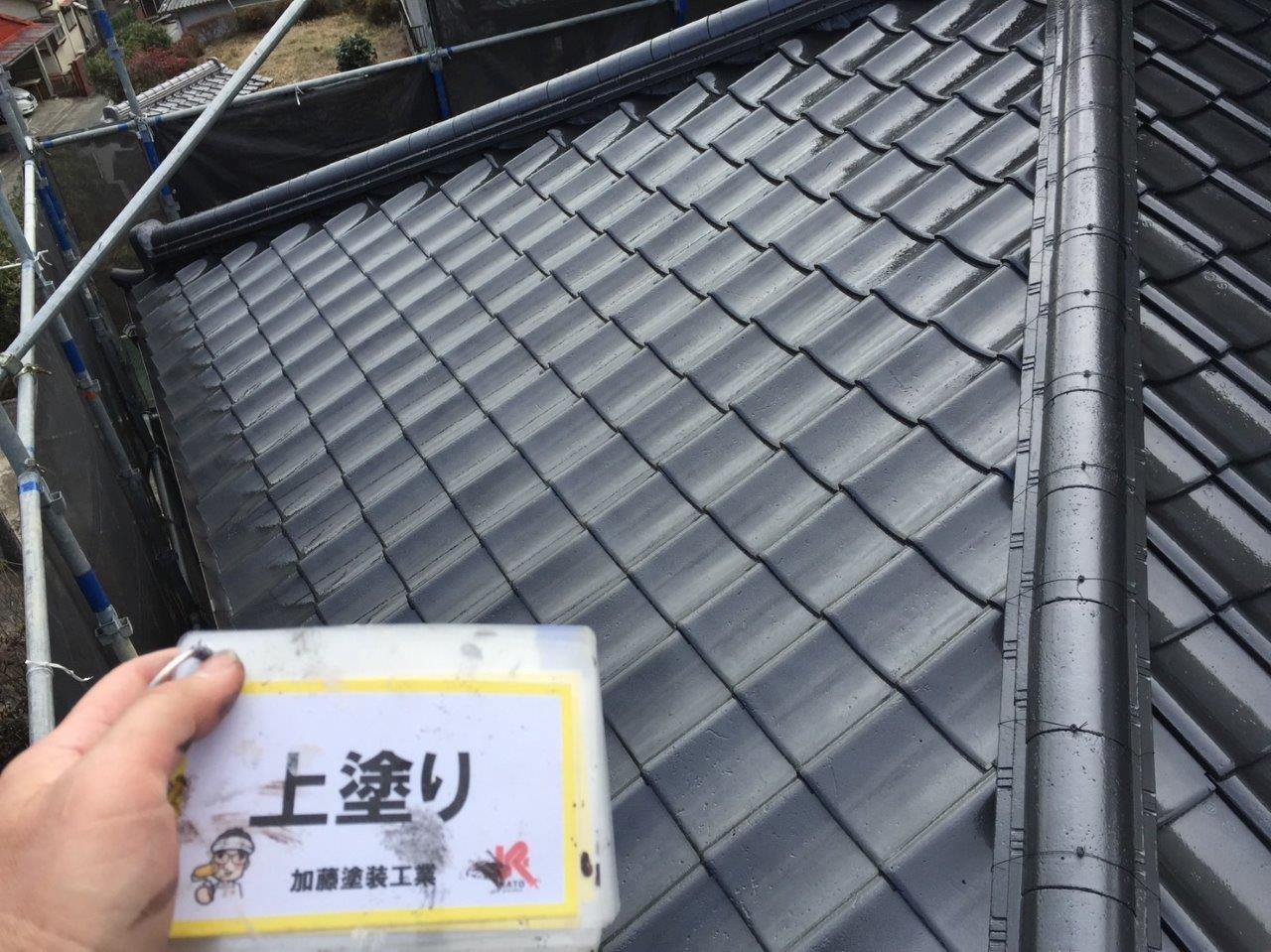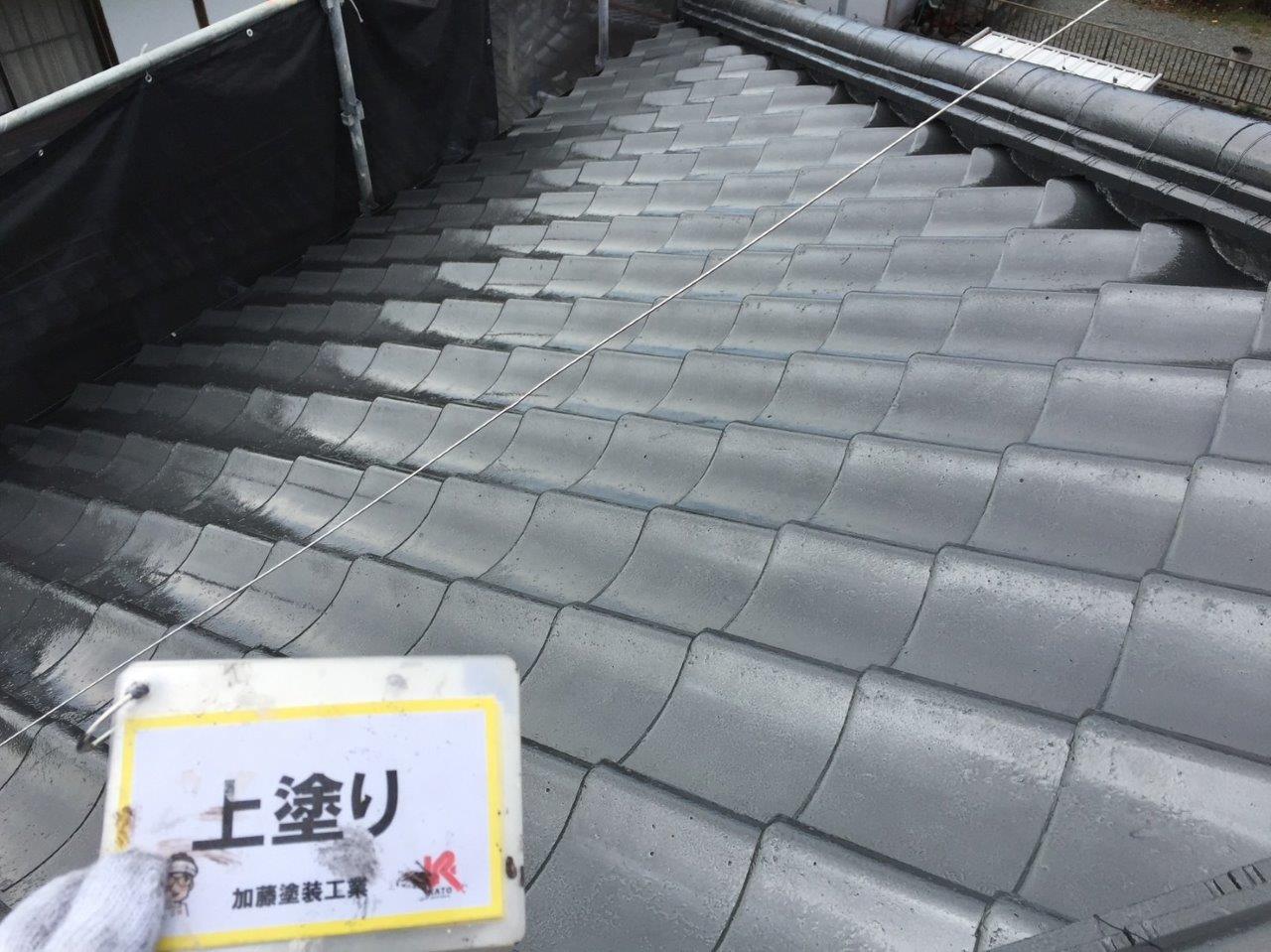 須屋セメント瓦塗装工事 上塗りをしました。