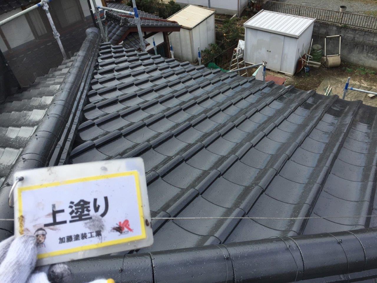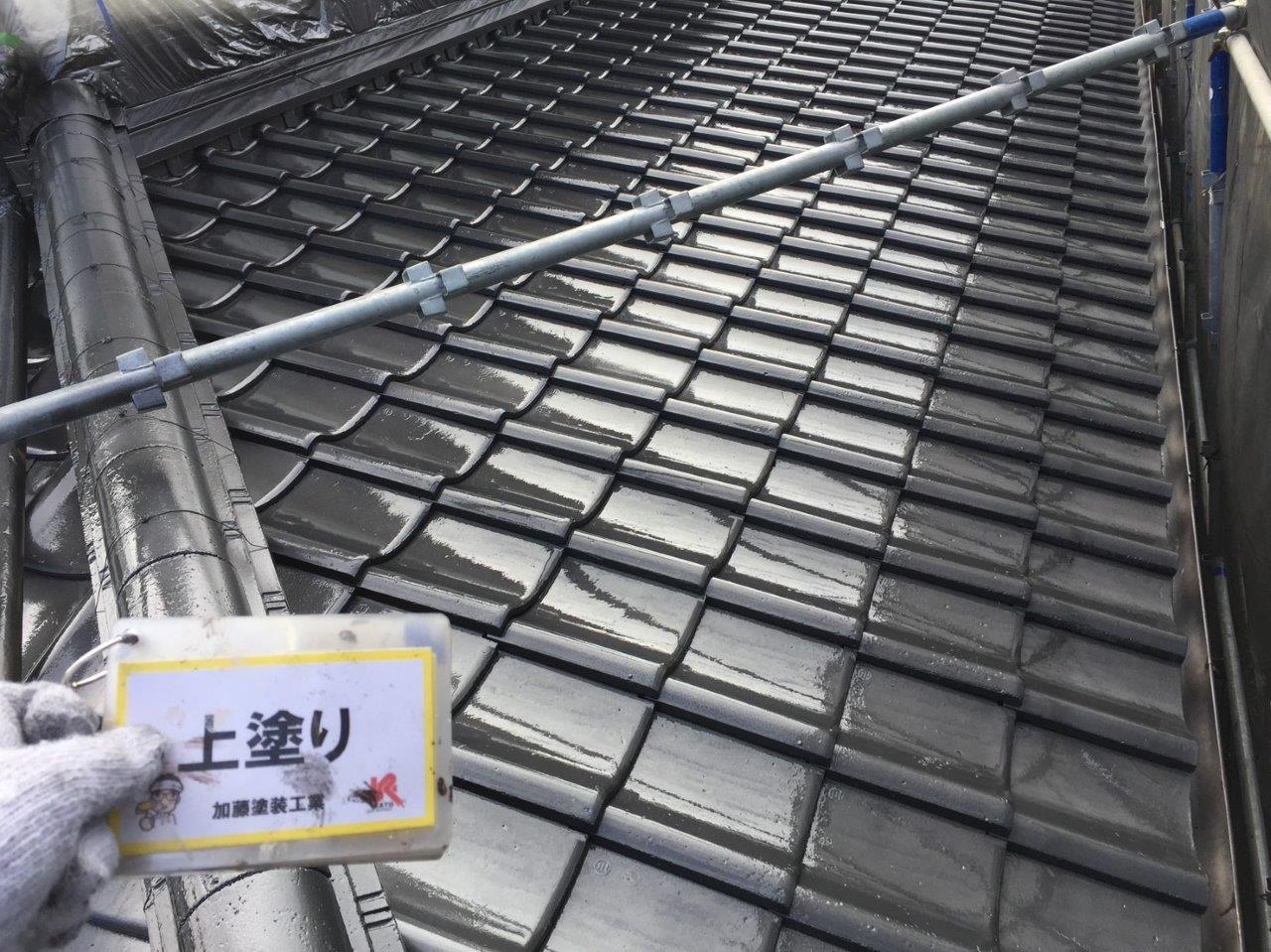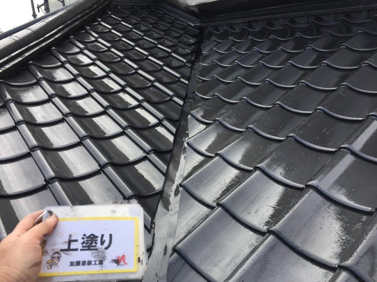 須屋セメント瓦塗装工事 上塗りをしました。