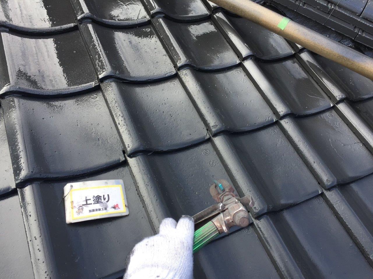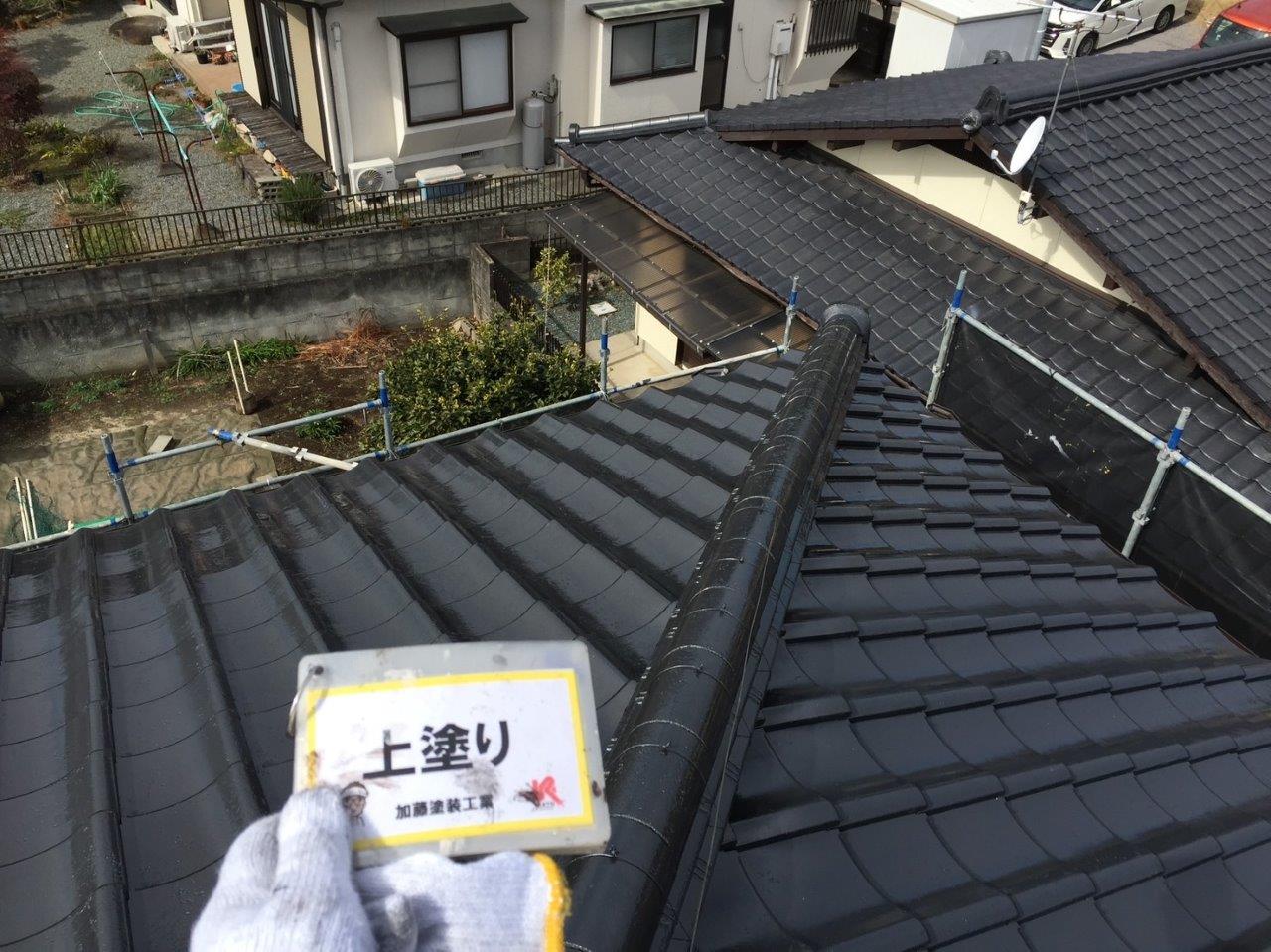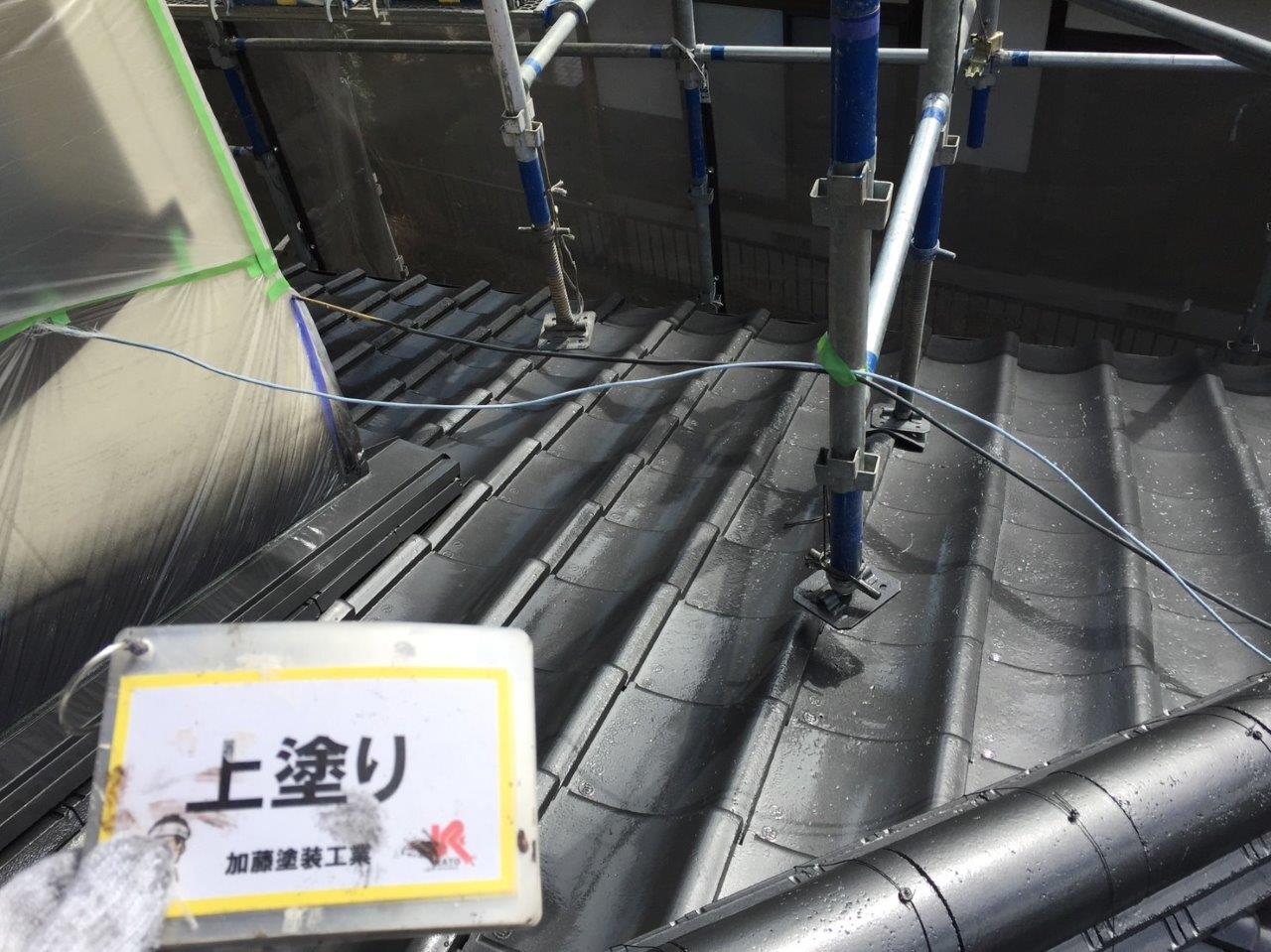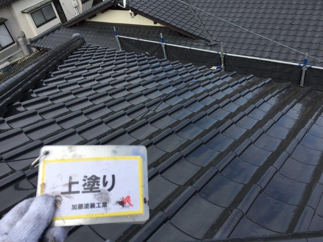 須屋セメント瓦塗装工事 上塗りをしました。