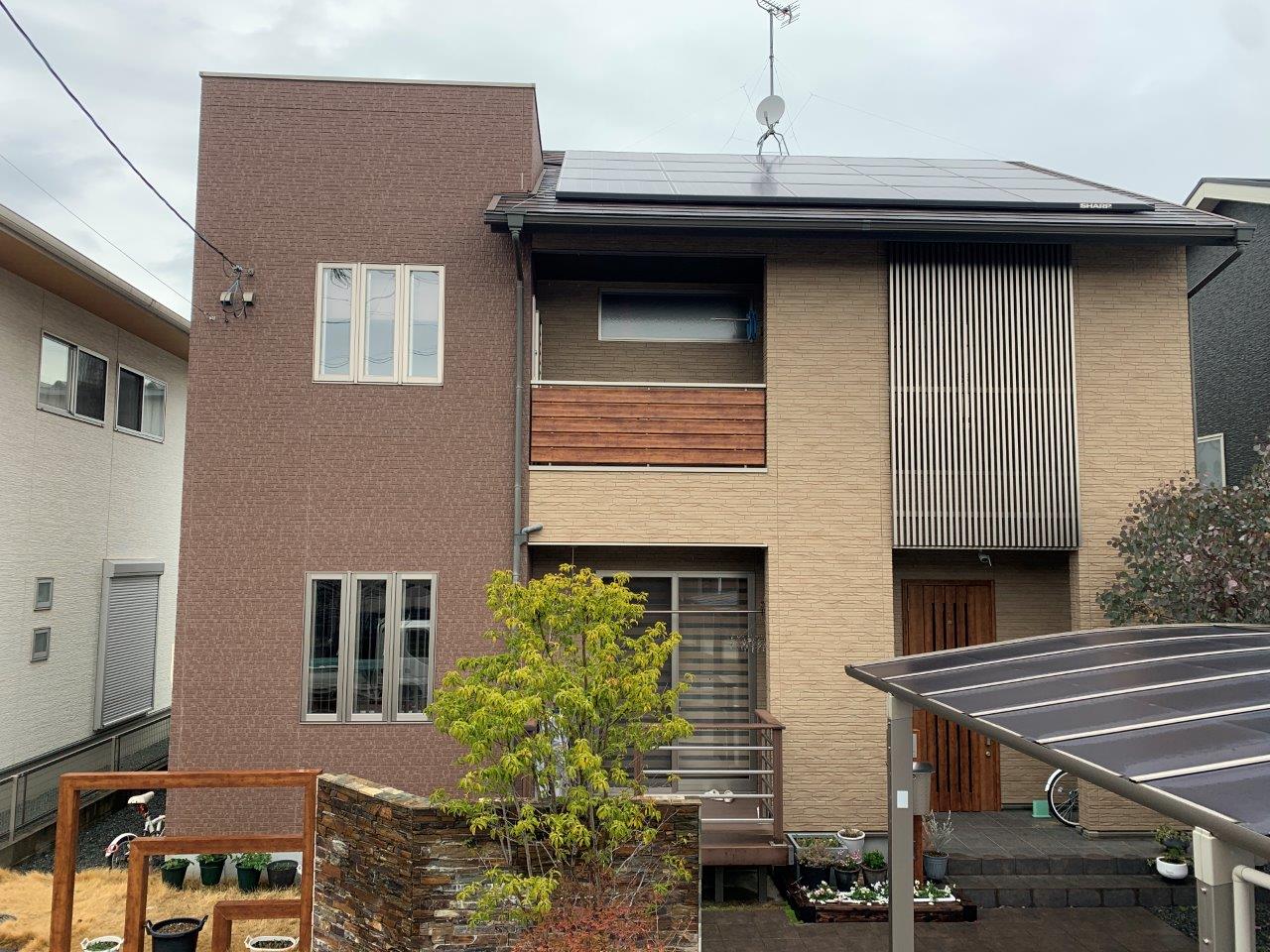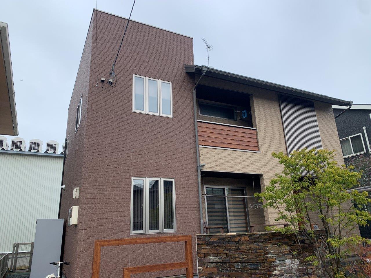 施工前の壁面の写真になります。何色かいろみが入っていますね、単色塗装仕上げではなく多彩模様仕上げを選びになられたので仕上がりが楽しみです。
