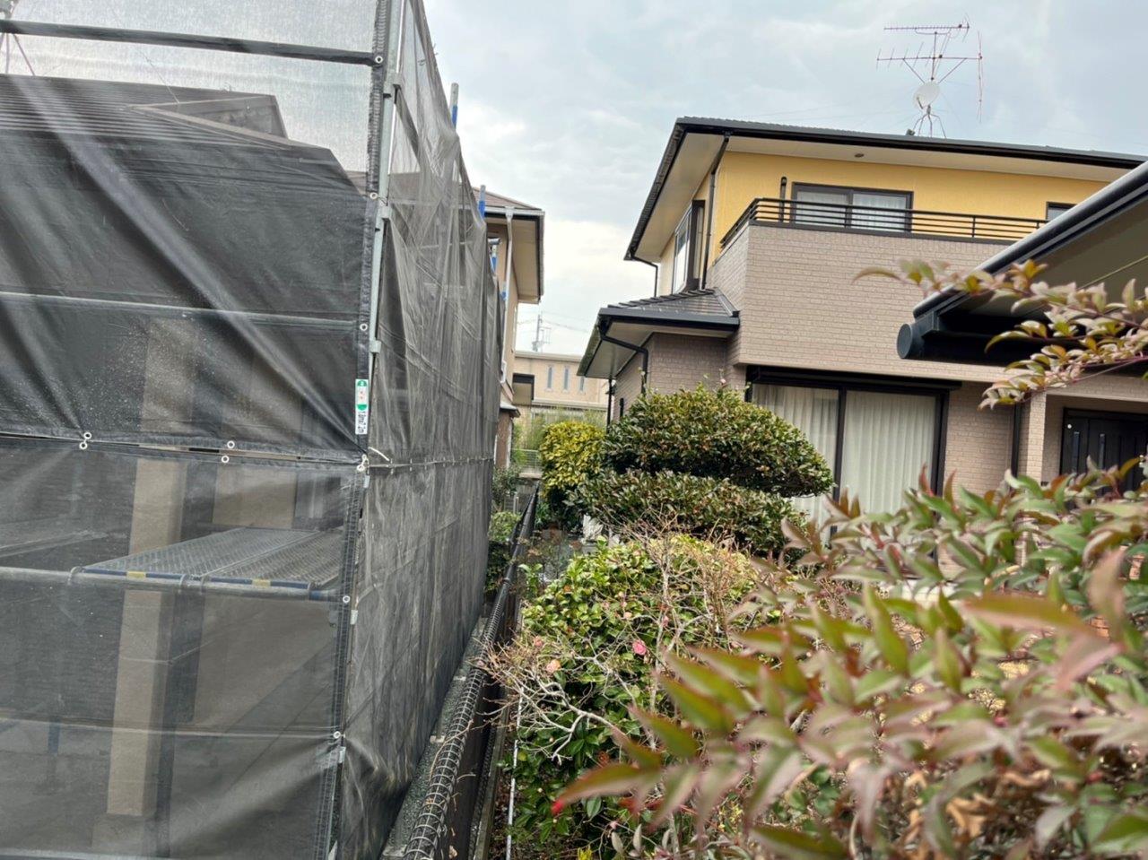 益城町S様邸 外壁塗装 足場の組立、菊陽町Y様邸 施工前の撮影。